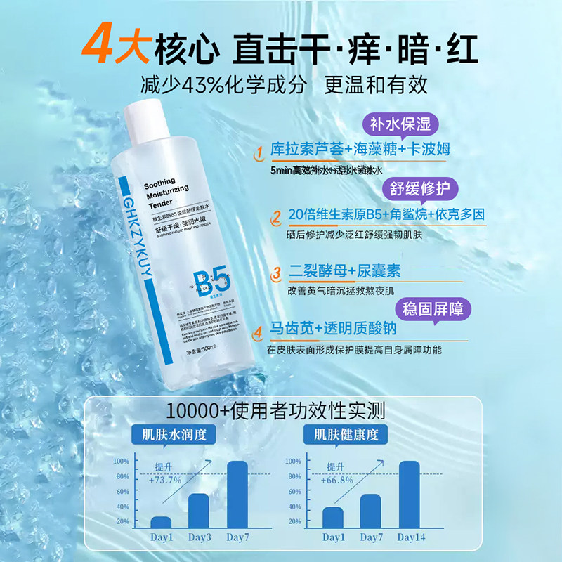 B5爽肤水积雪草补水保湿敷收缩毛孔修护舒缓精华女化妆水官方正品
