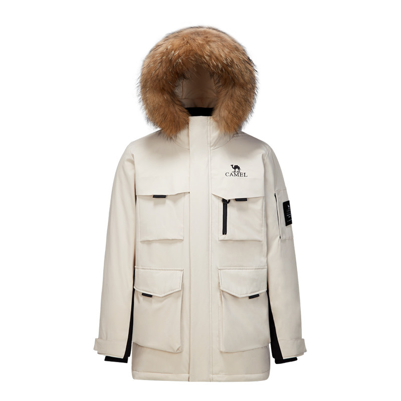 骆驼运动工装羽绒服加厚冬季新款大毛领派客服羽绒外套