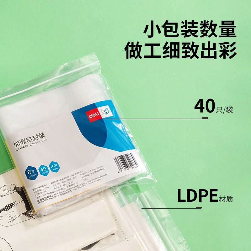 得力19253/19254 /19255 /19256加厚自封袋防水PE透明口罩食品收纳袋防尘密封