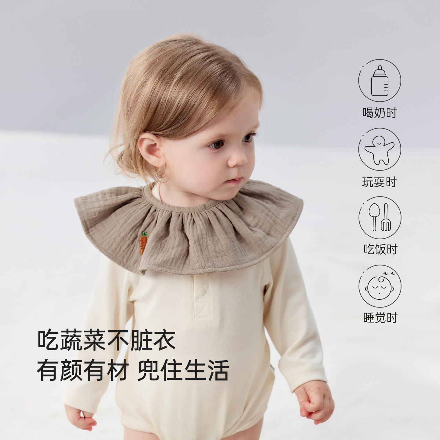 babylove婴儿围嘴纯棉纱布口水巾宝宝防吐奶防污围兜荷叶边假领
