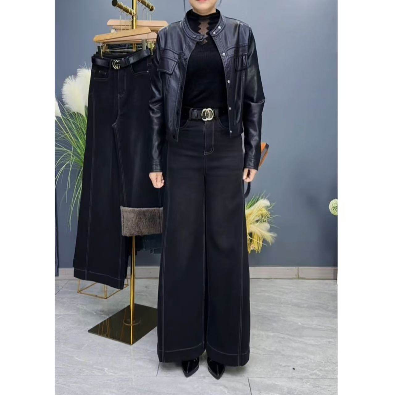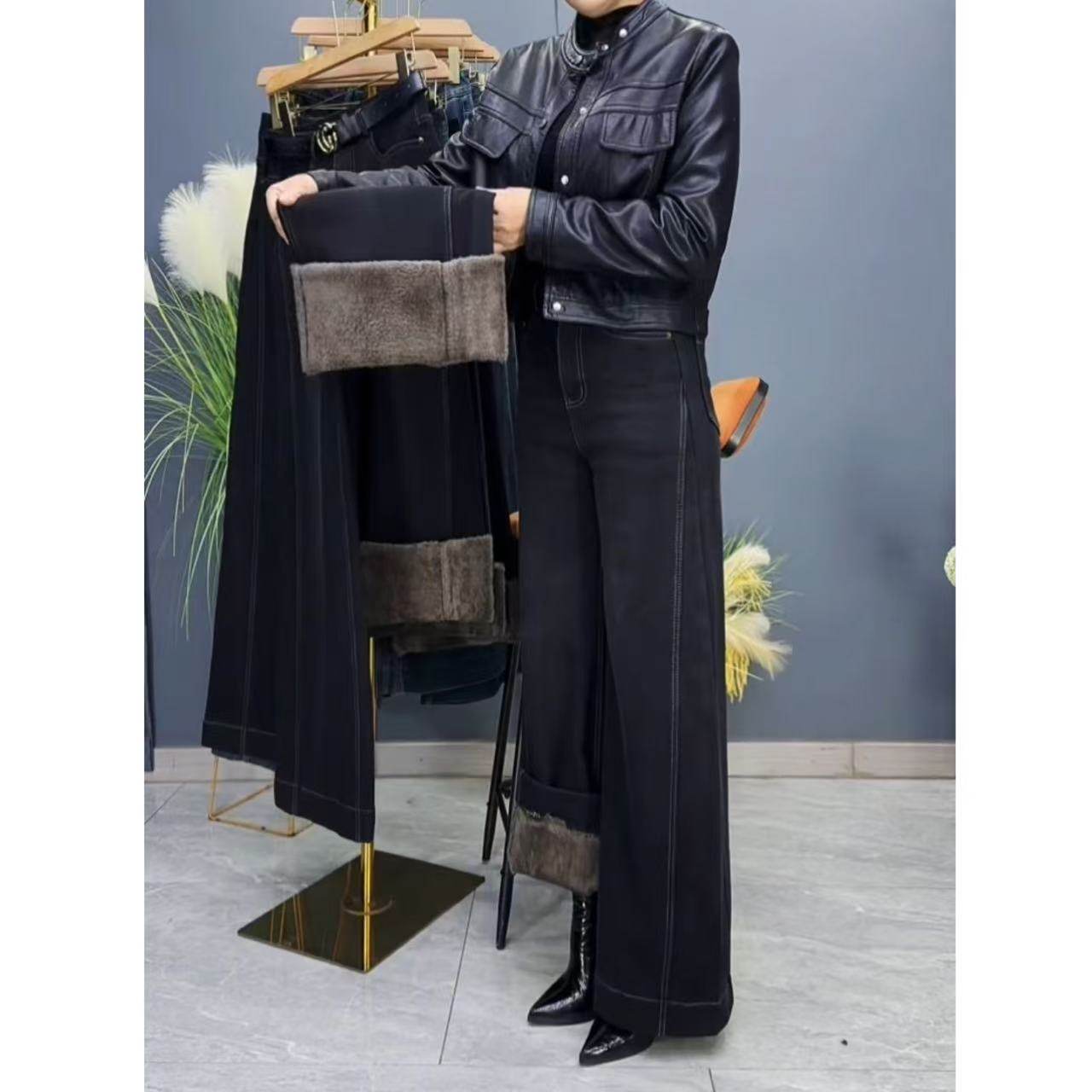 保暖羊羔绒牛仔阔腿裤2025新款冬季时尚百搭遮肉加绒加厚女士长裤
