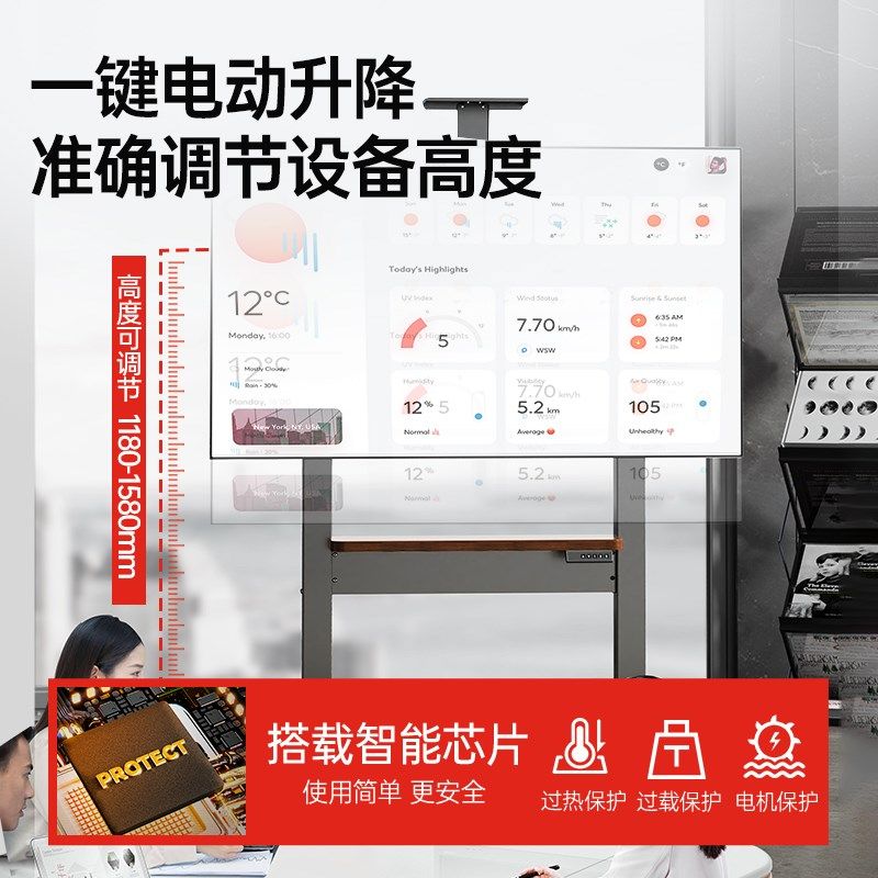 电视机移动支架电动遥控智能升降落地立式带轮推车65/75/85寸通用