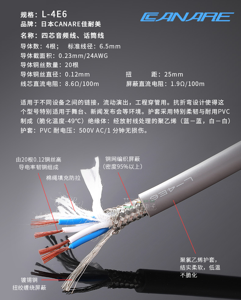 CANARE佳耐美定制卡侬话筒线NEUTRIK镀金卡农公母线L-4E6S音频线调音台麦克风电容麦连接线延长线xlr公转母