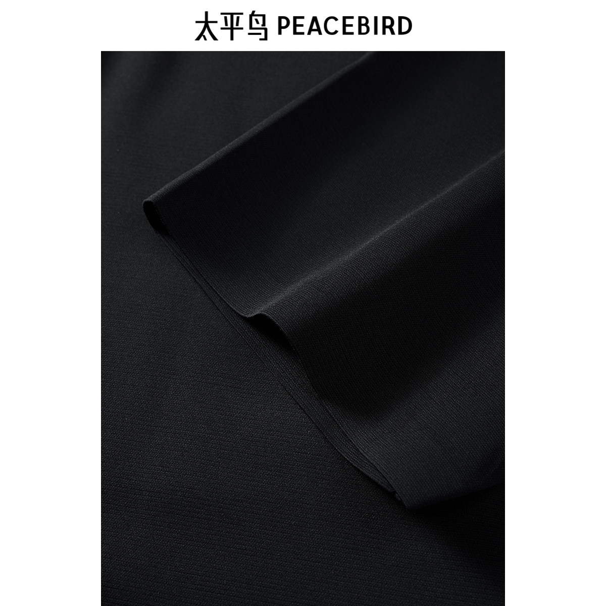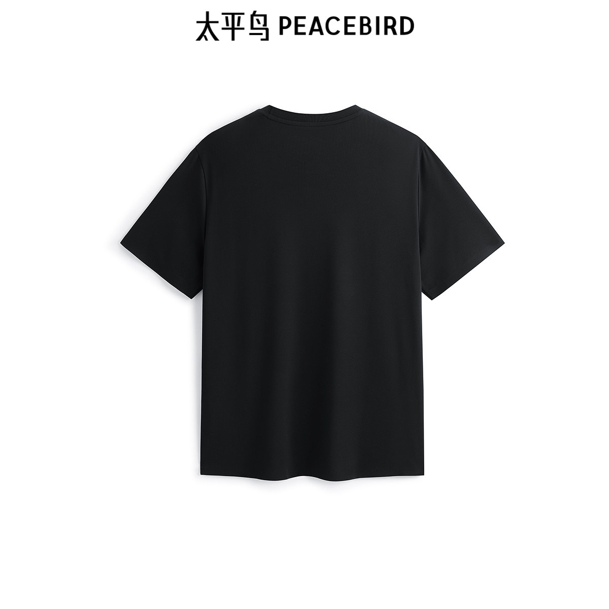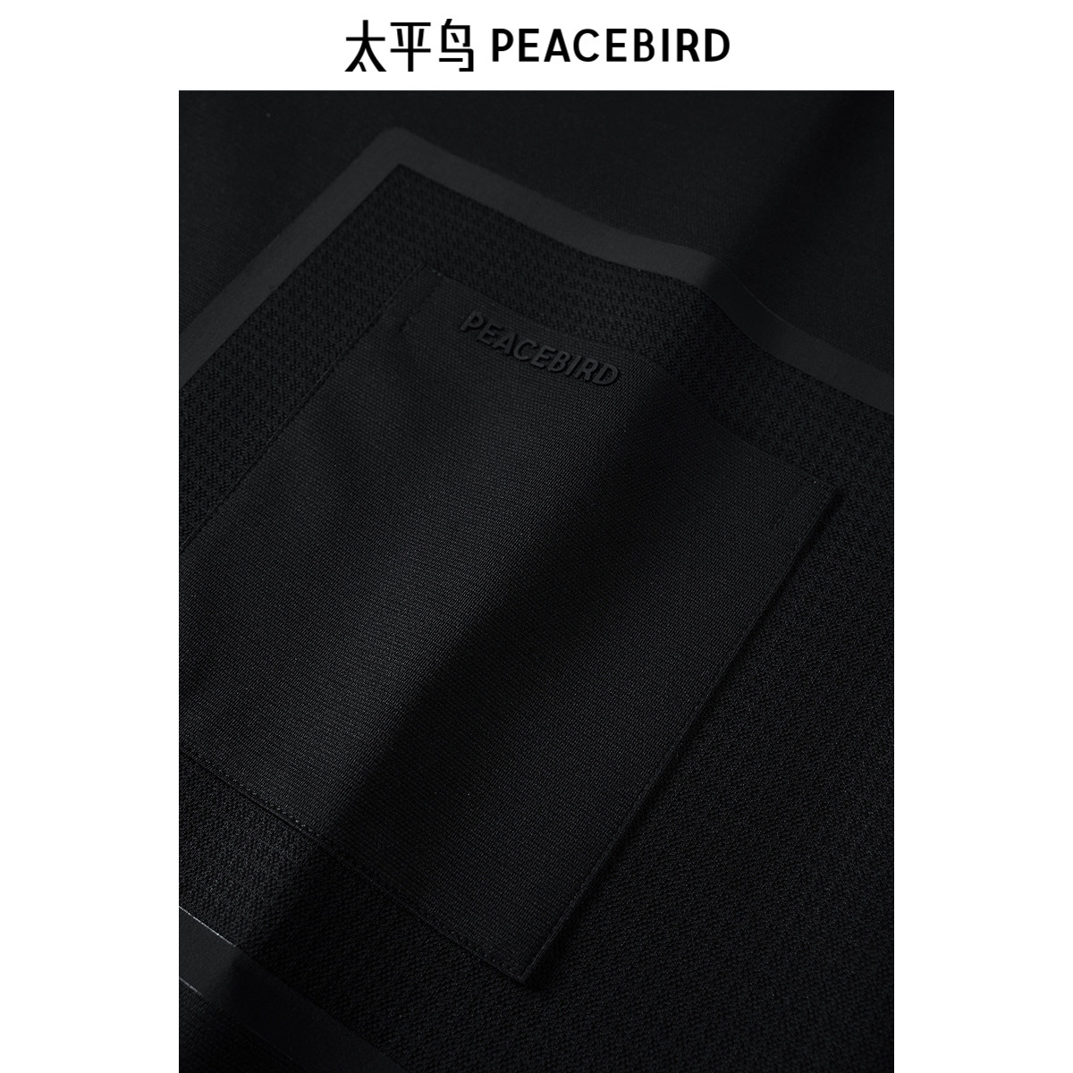 太平鸟男装 圆领针织短袖T恤男秋季黑色口袋合体短袖体恤男