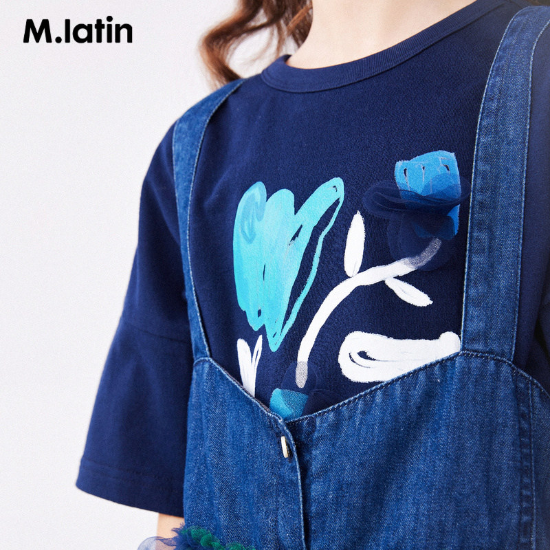 牛仔拼接网纱,立体花瓣装饰可调节背带裙