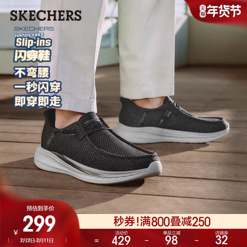 Skechers斯凯奇闪穿鞋春季新款男休闲乐福鞋一脚蹬软底通勤鞋