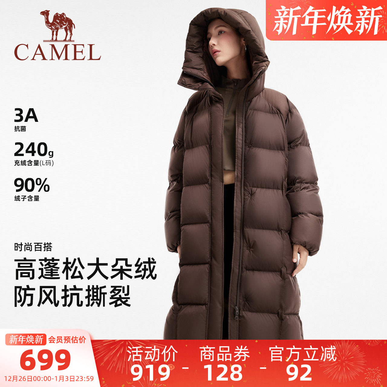 骆驼女装羽绒服中长款2025冬新款加厚保暖防风连帽90鸭绒羽绒外套