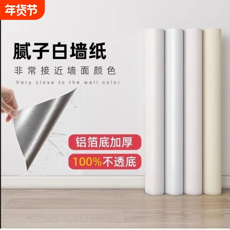 腻子白墙纸自粘防水防潮可擦洗卧室温馨自贴壁纸家具翻新宿舍贴纸