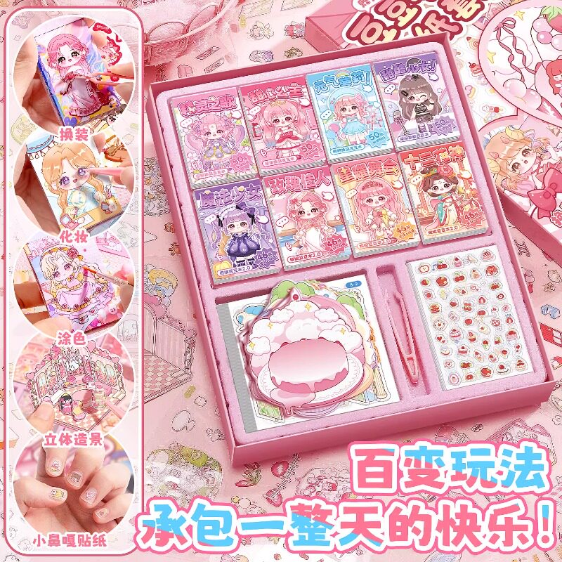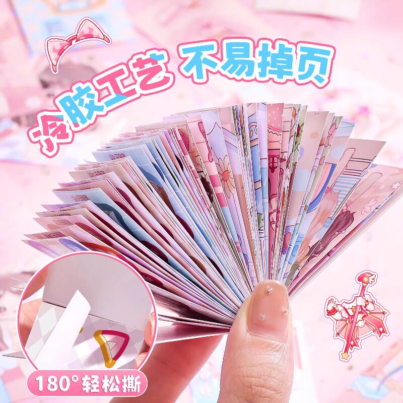 萌崽新款学霸学渣果冻贴纸安静书儿童免裁剪手工粘贴DIY女孩趣味玩具
