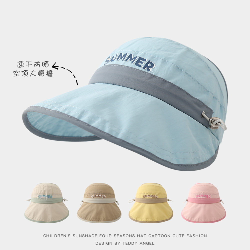 儿童防晒帽夏季男孩户外出游太阳帽女孩遮阳帽速干透气大檐空顶帽