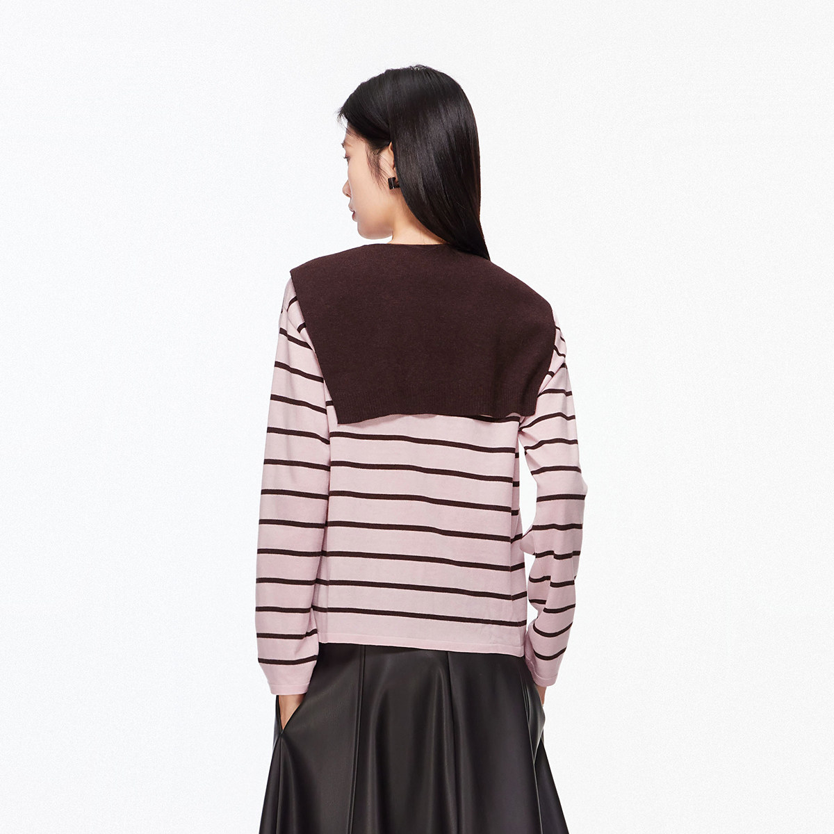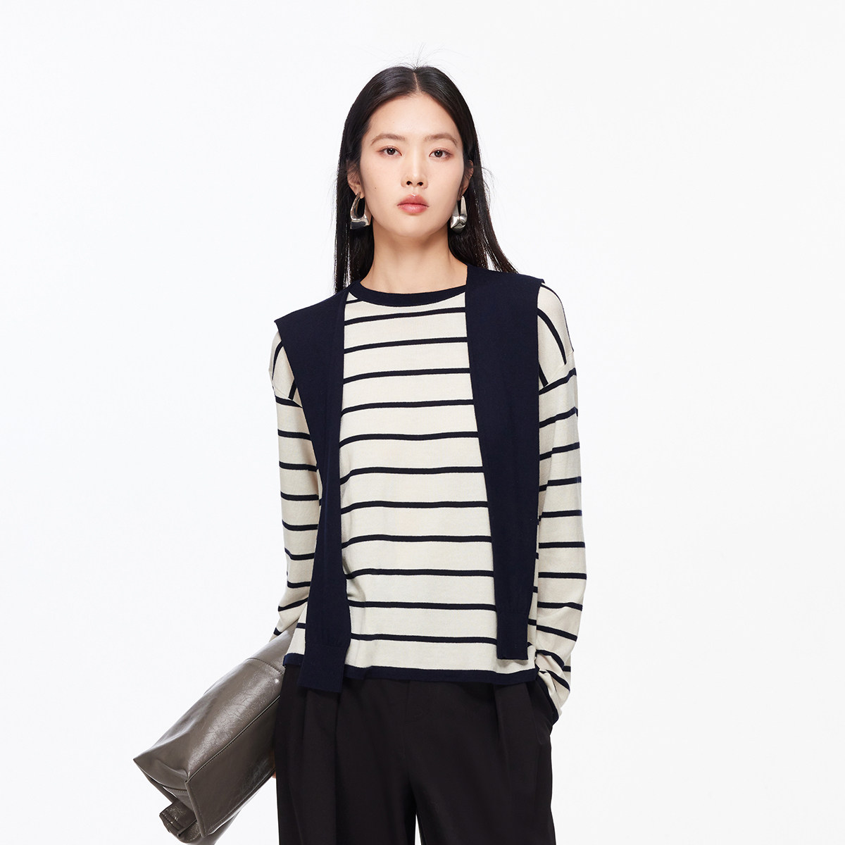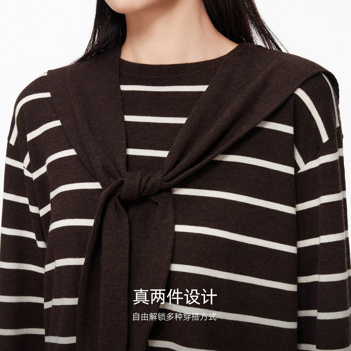 Vero Moda针织衫女26春新款含绵羊毛桑蚕丝系带条纹毛衣326124023