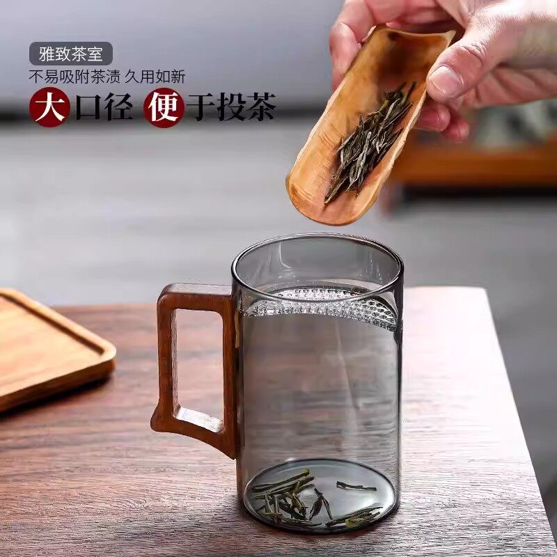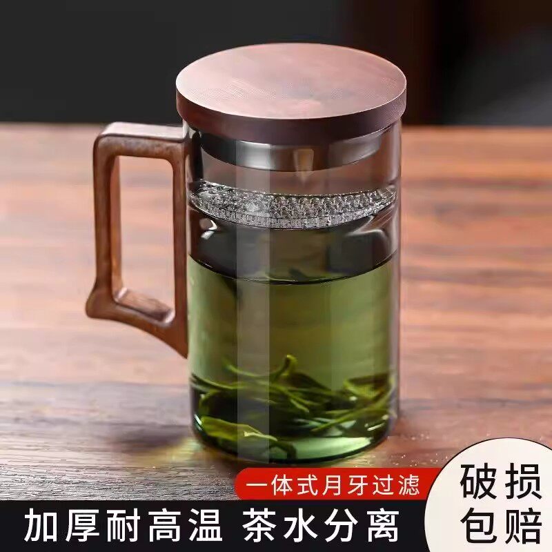 月牙杯绿茶过滤泡茶玻璃杯办公室高档个人专用耐高温茶水分离水杯