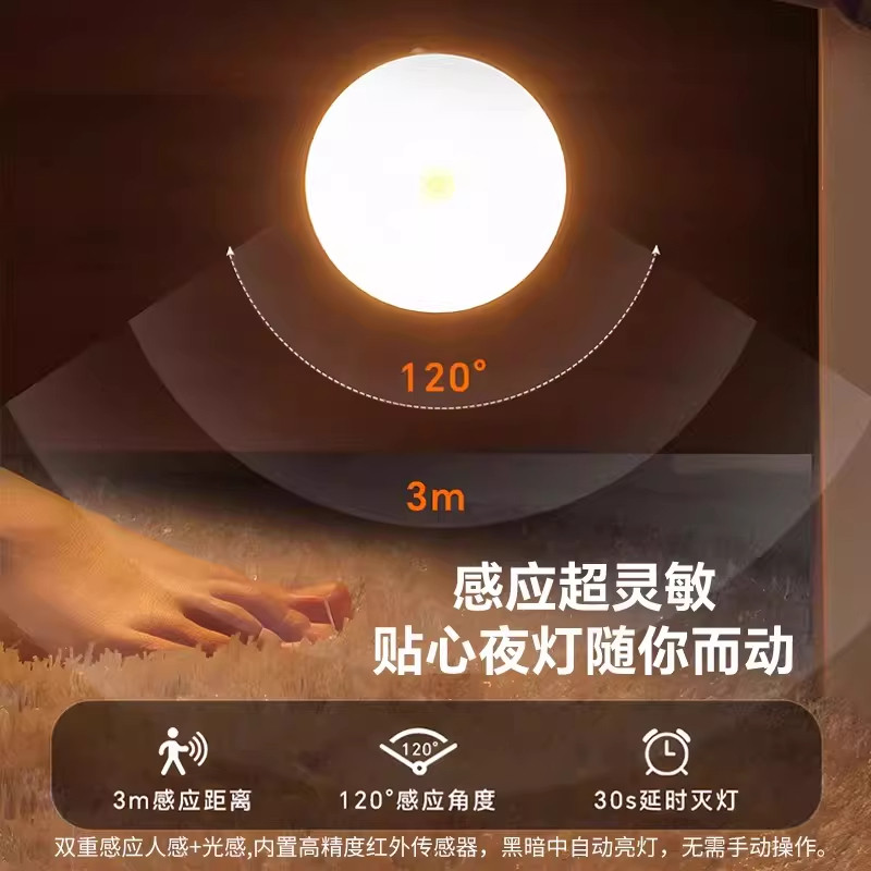 自动人体感应灯起夜卧室婴儿喂奶护眼壁侧发光过道充电小夜灯地脚