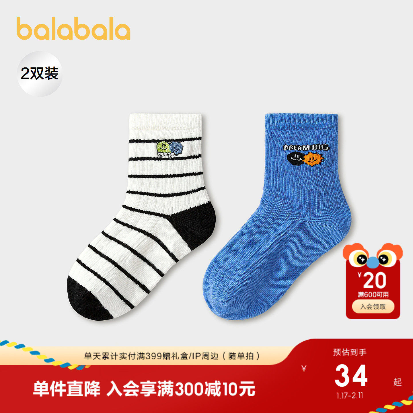 【商场同款】巴拉巴拉儿童袜子春秋男童棉袜撞色短袜舒适