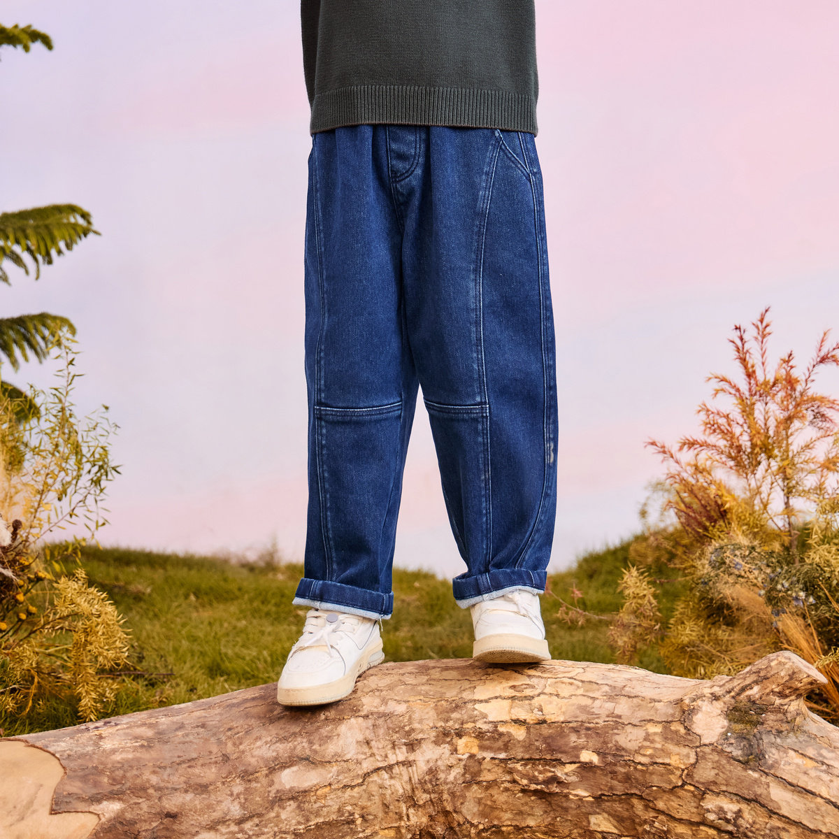 soyo舍予良仓童装儿童加绒牛仔裤秋冬装柔软针织男童长裤女童裤子