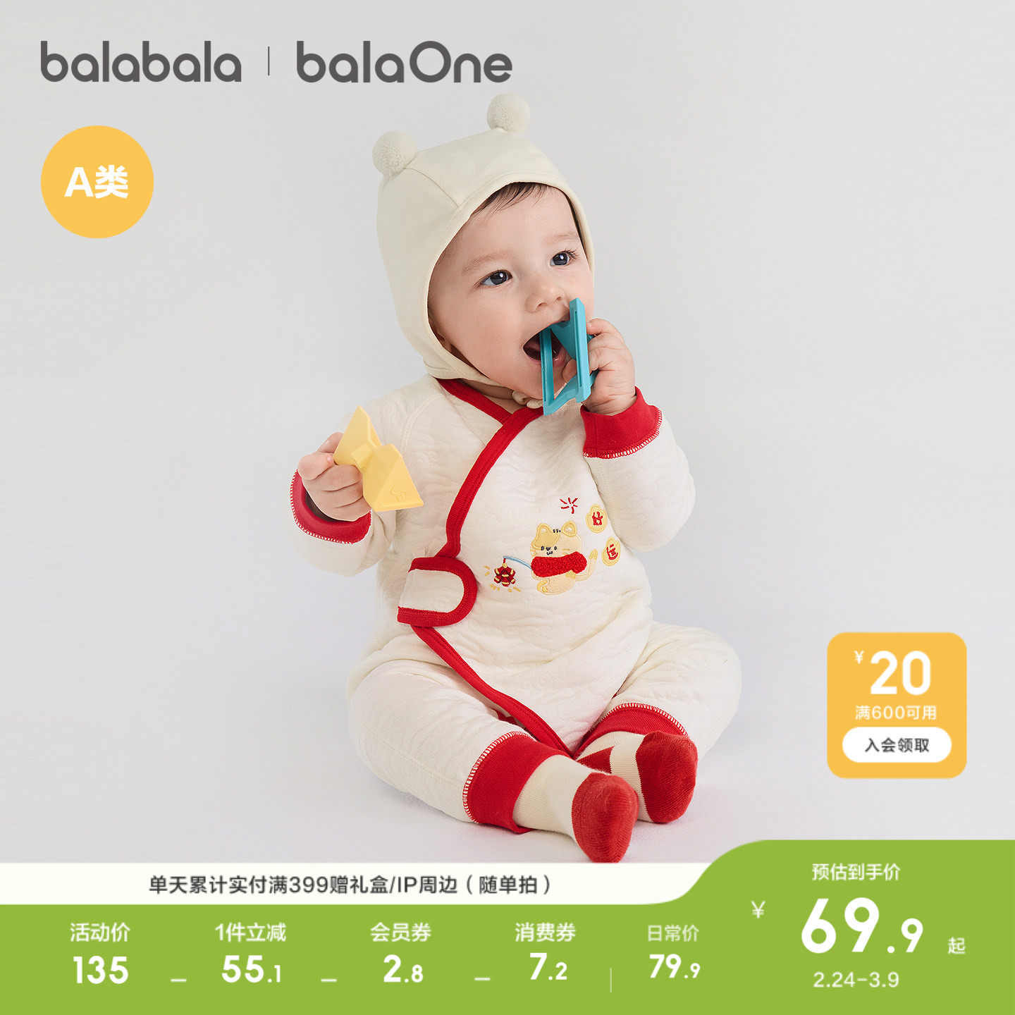巴拉巴拉婴儿连体衣新生儿宝宝衣服满月爬服2025新款冬夹棉加厚萌