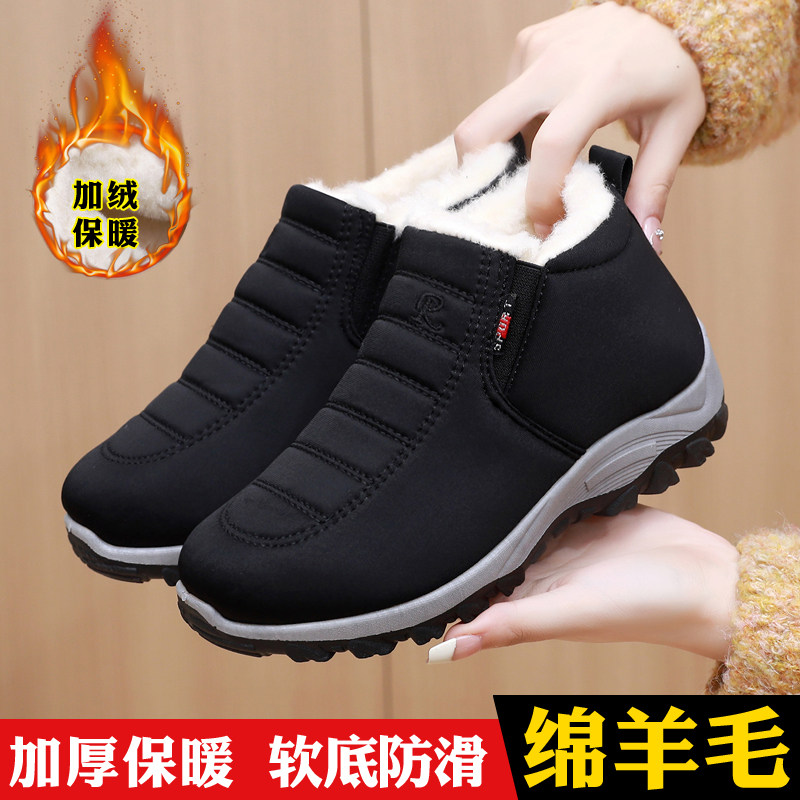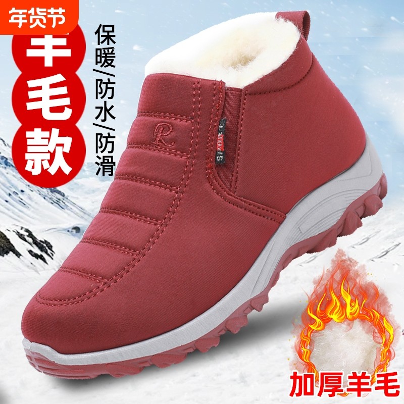防滑防水老人棉鞋北京老布鞋加绒保暖妈妈鞋软底老年奶奶鞋冬季