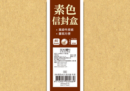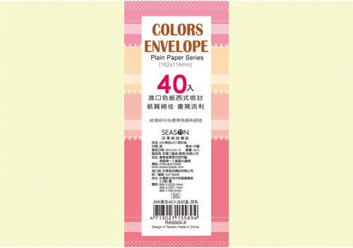 SEASON台湾四季25K素色40入信封盒进口色纸西式可邮寄