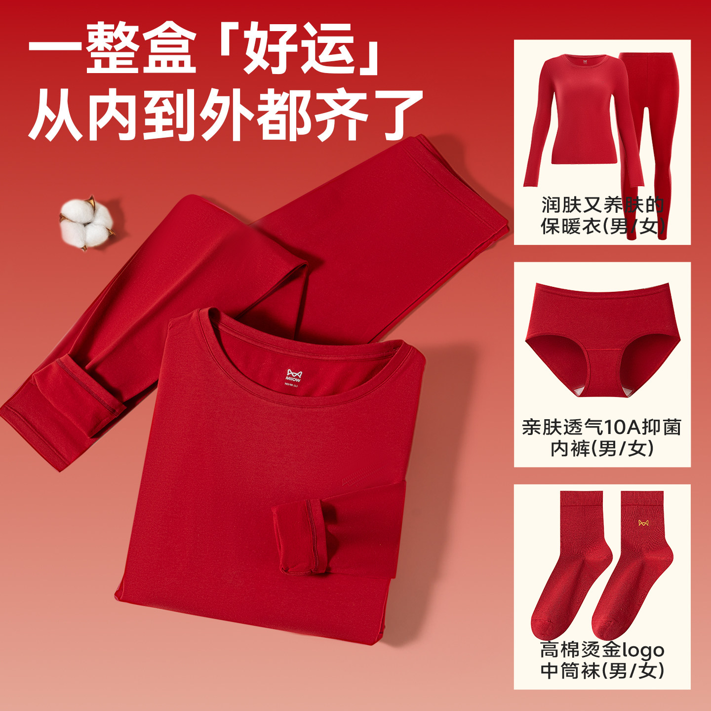 【香菇超级年货节】猫人喵红盒华熙生物玻尿酸保暖内衣套装礼盒装