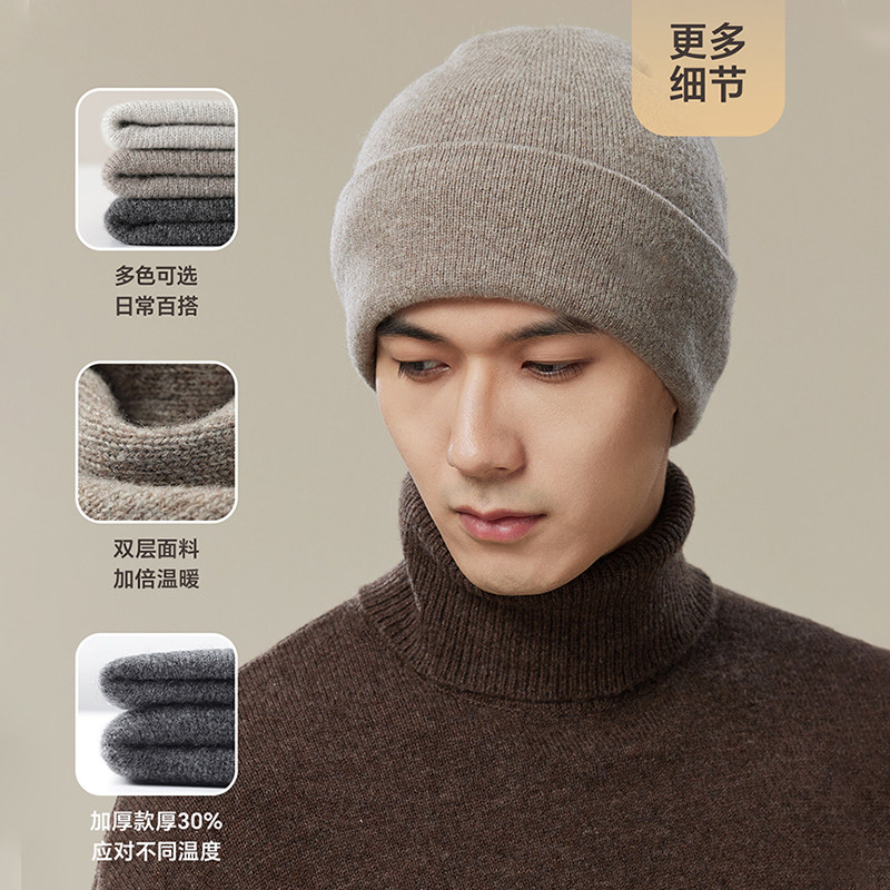 羊毛男士毛线帽子冬季加绒大头围双层中年冷帽加厚保暖护耳针织帽
