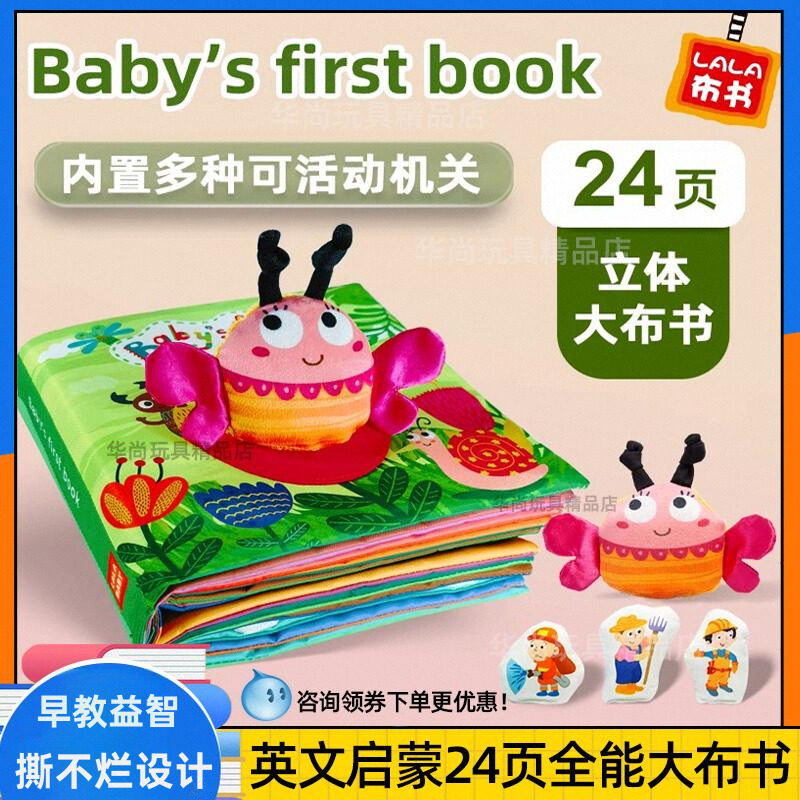 拉拉布书撕不烂可啃咬早教益智土豪书玩具宝宝第一本立体英文布书