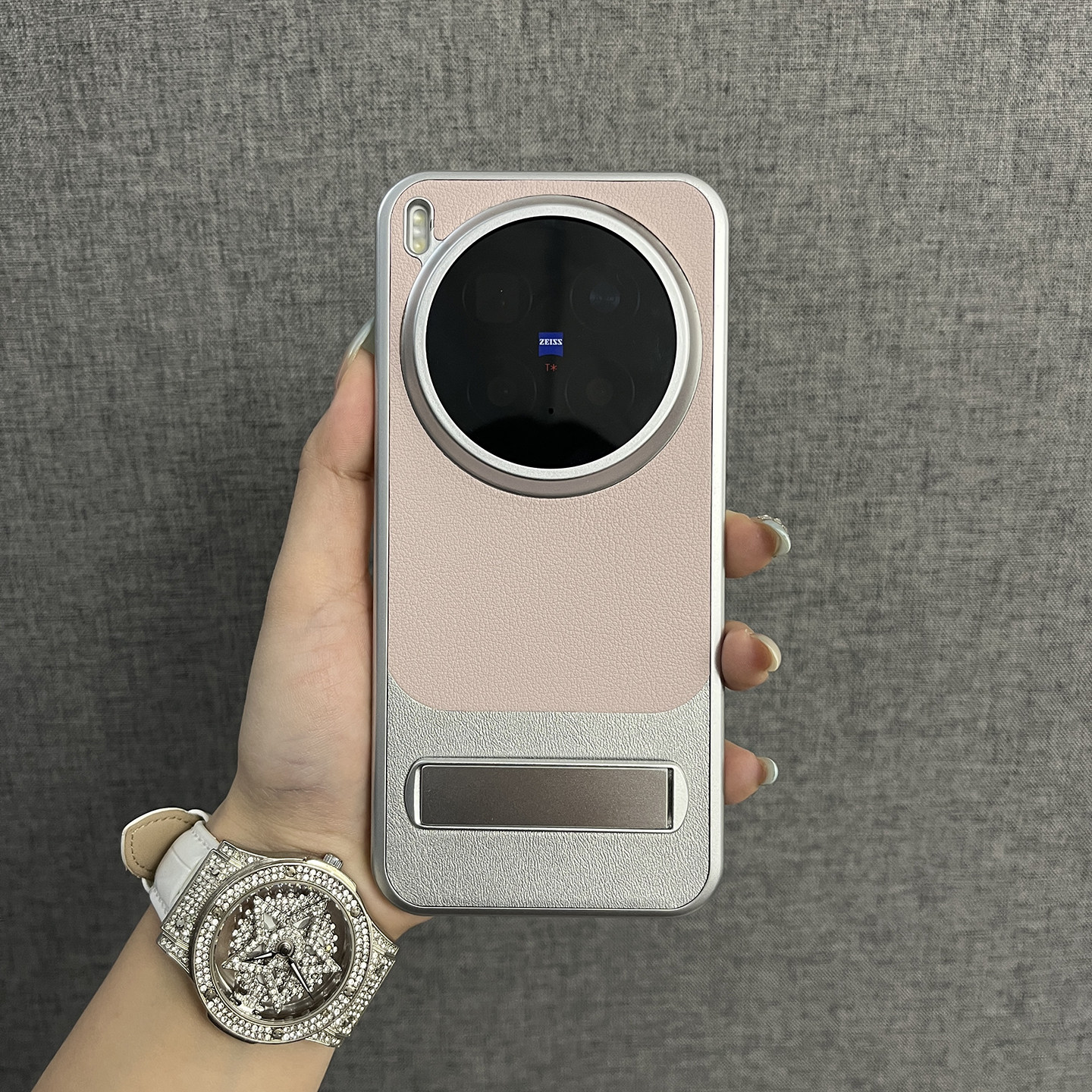 三只鱼【网红素皮纹支架樱花粉】适用vivox300pro/vivox200ultra手机壳新款电镀时尚防摔半包保护套男女ins风