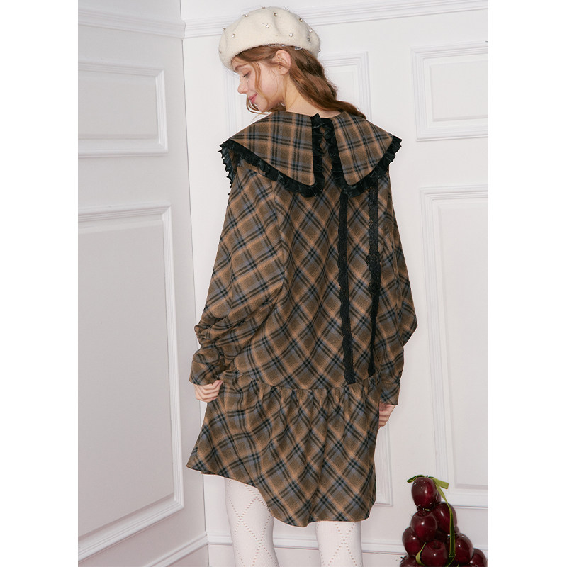 BOBBYBECKY原创复古格纹吊带连衣裙重工大裙摆显瘦女装衣服