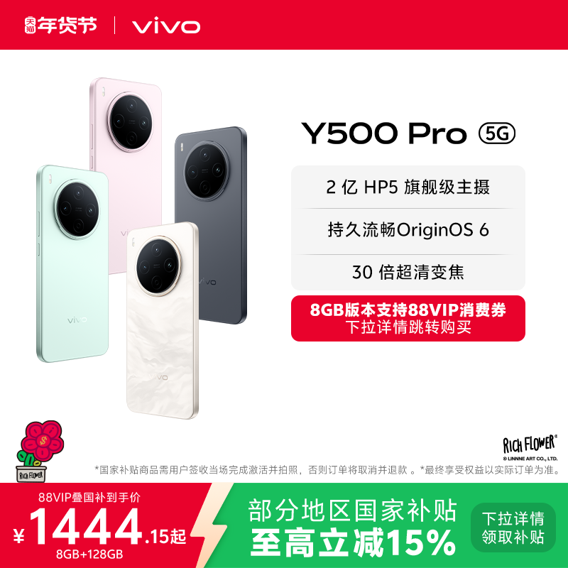 【国家补贴至高立省15%】vivo Y500 Pro 新品手机官方旗舰店官网正品2亿像素超清主摄大电池耐用抗摔