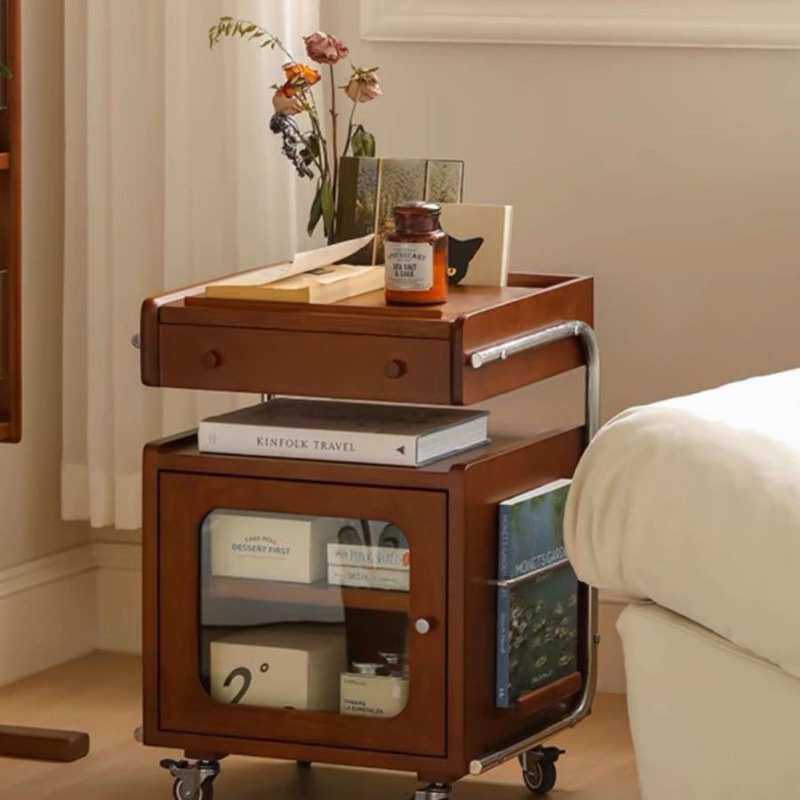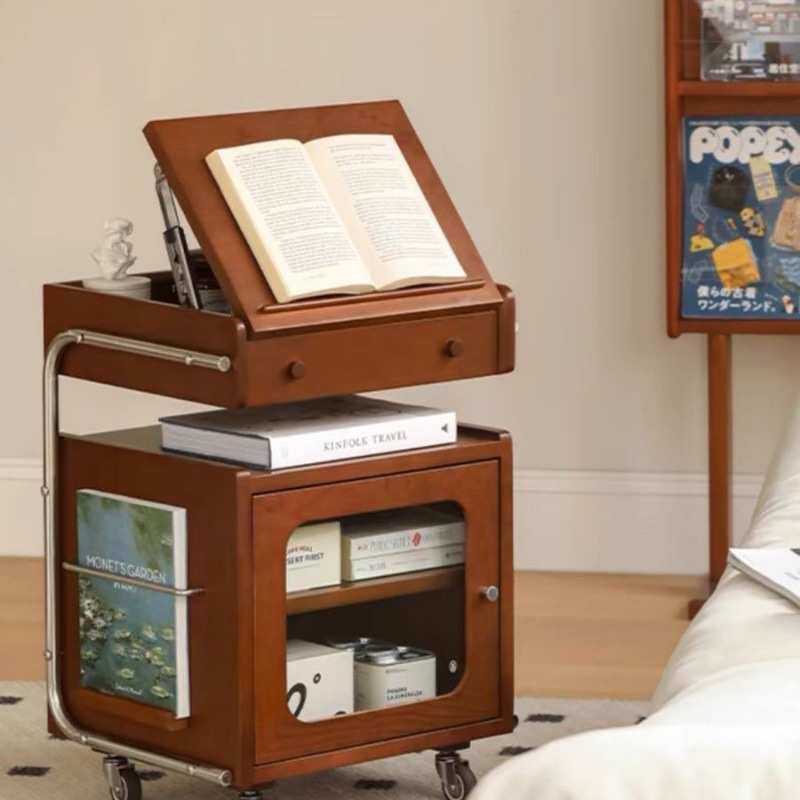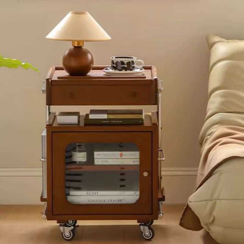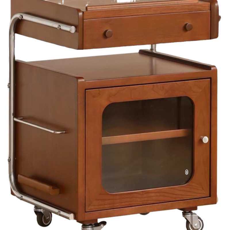 北陌边柜家具实木小推车原木客厅收纳置物移动沙发樱桃木机器人