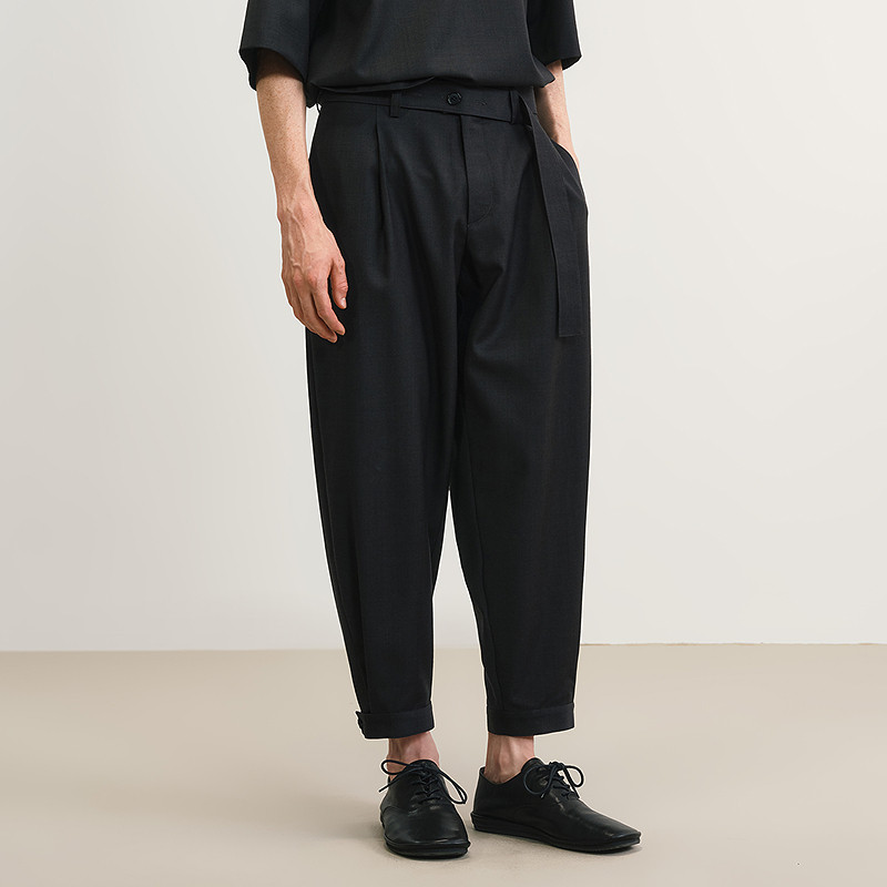 LR MADE 25SS 侧缝打褶 小弯刀垂感 碳磨洗水纯棉休闲廓形长裤