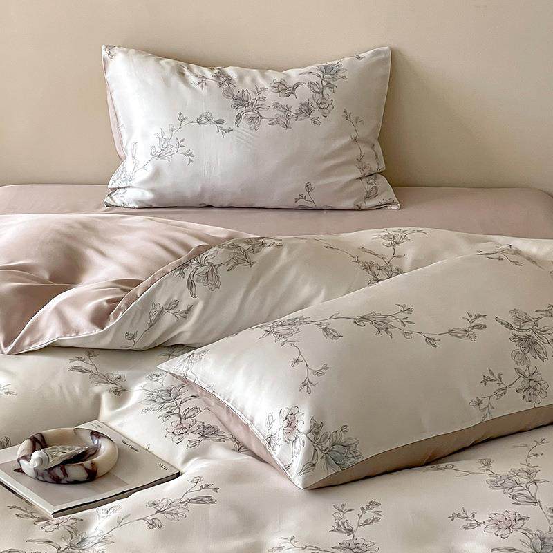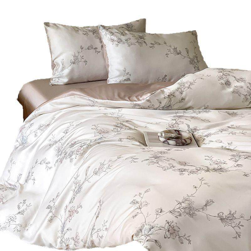 60支兰精天丝四件套新中式复古花卉夏季冰丝凉感床笠被套床品套装