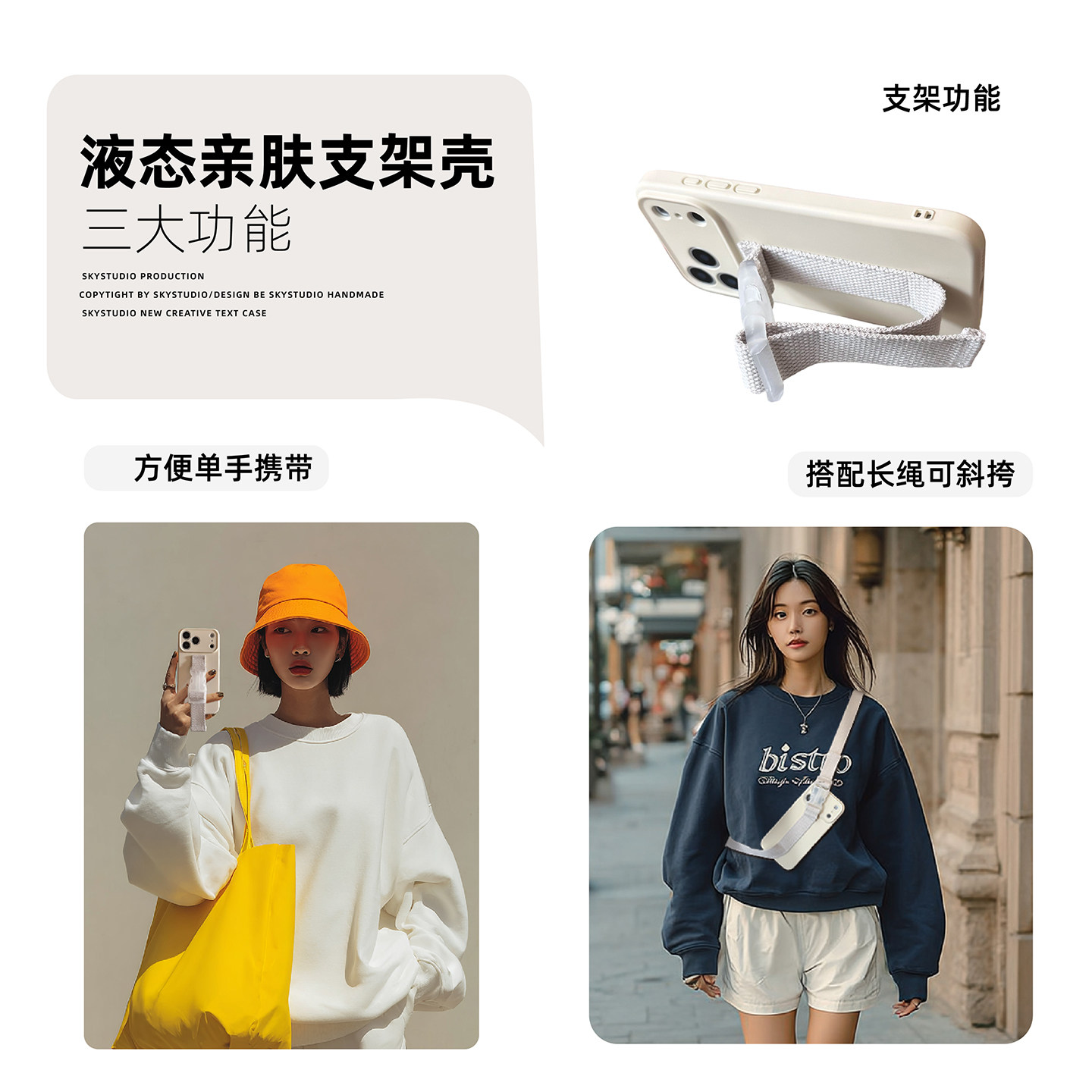 官网液态白色同款苹果17promax手机壳潮流运动风防摔适用iPhone17追剧腕带支架air多功能防丢斜挎高质量情侣