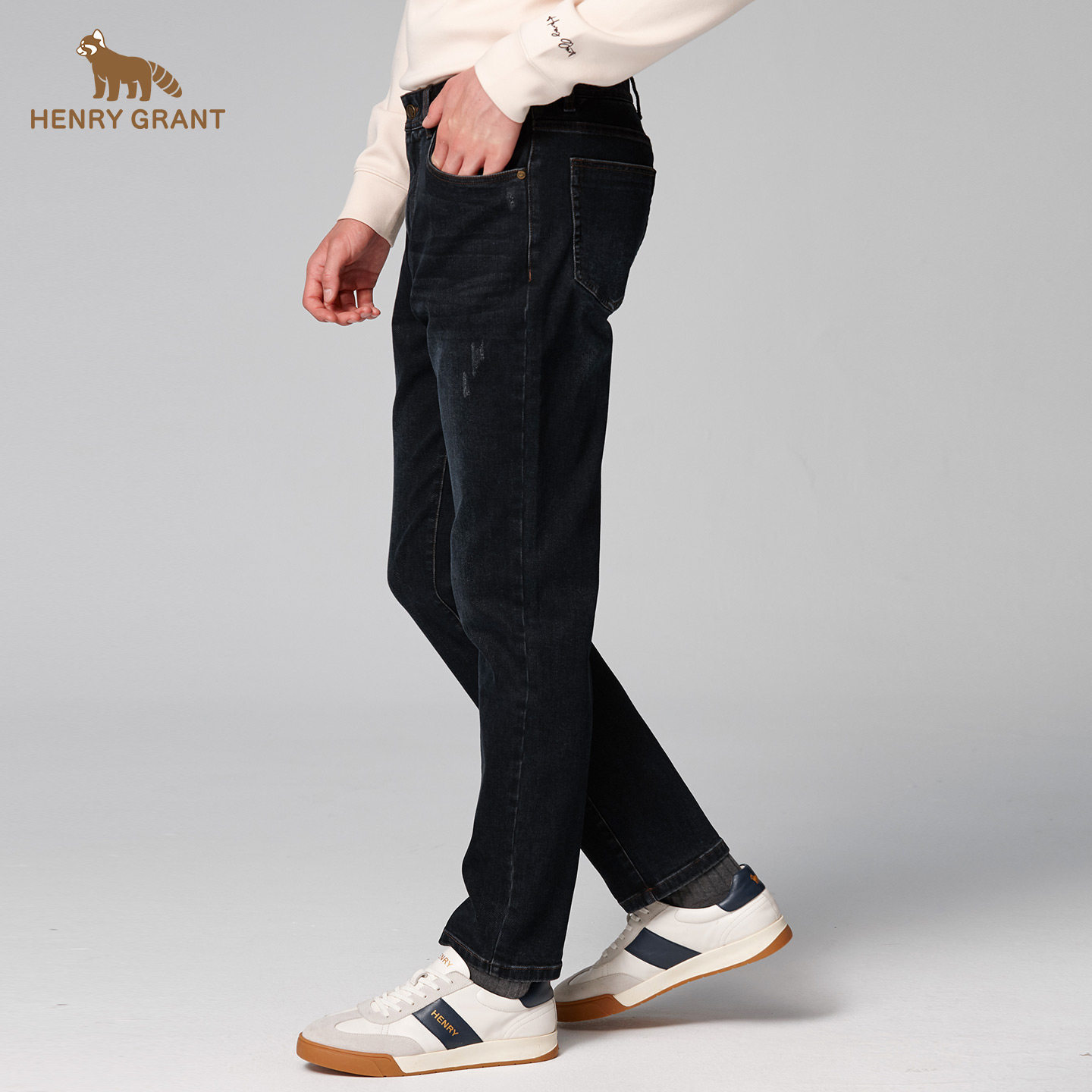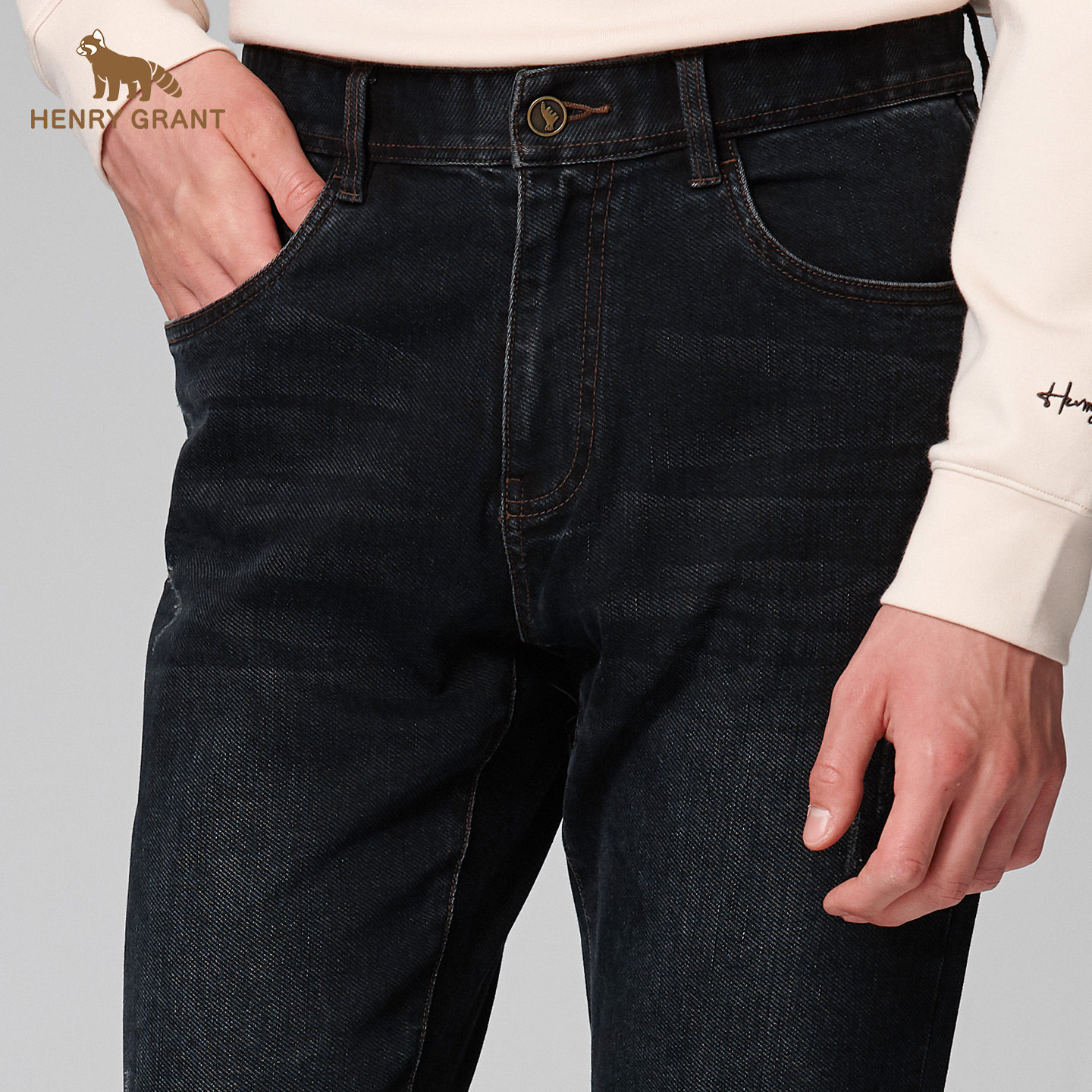 亨利格兰秋冬新品牛仔裤男士英伦休闲深色微弹长裤百搭中高腰裤子