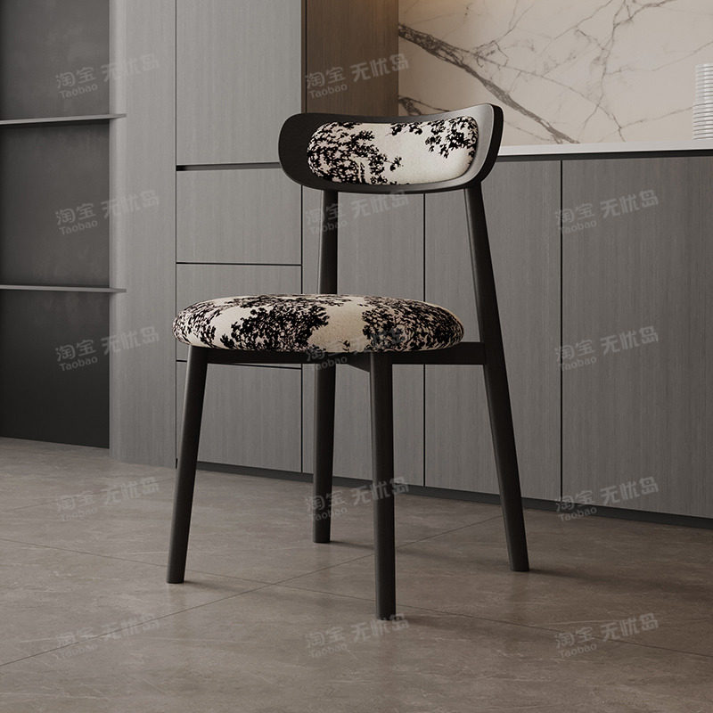 轻奢侘寂风餐椅皮软包设计师现代弯曲木咖啡厅实木椅子家用书房椅