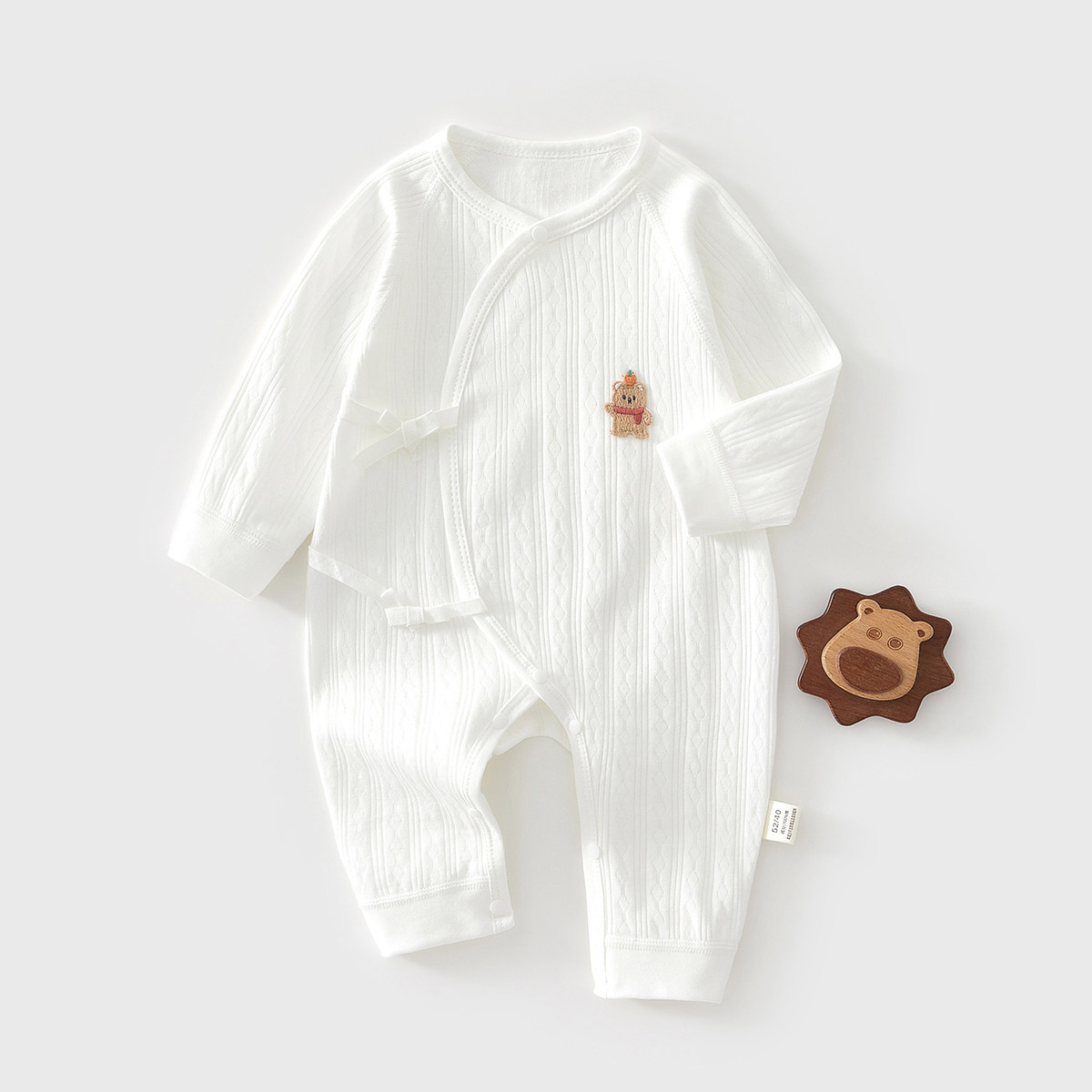 婧麒婴儿连体衣春秋季新生儿宝宝衣服新款纯棉偏开打底系带蝴蝶衣