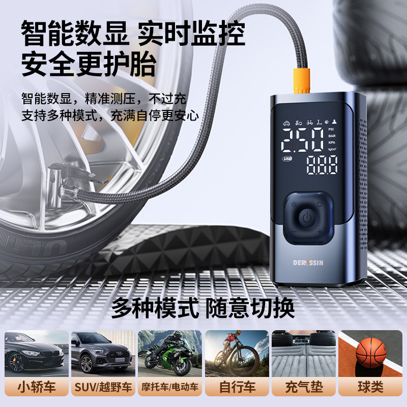 充气泵车载汽车无线车用便携式用电动打气泵轿车轮胎高压打气筒宝