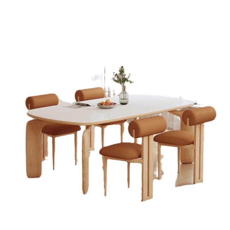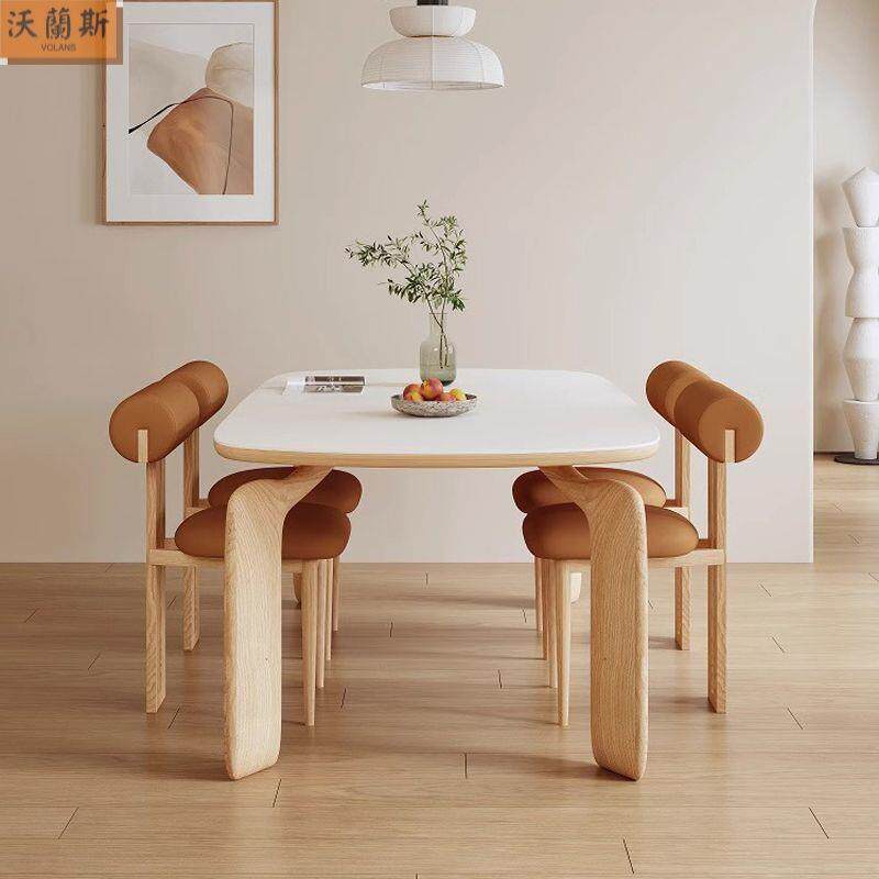 奶油风法式岩板实木餐桌椅原木现代简约北欧风小户型吃饭桌商用