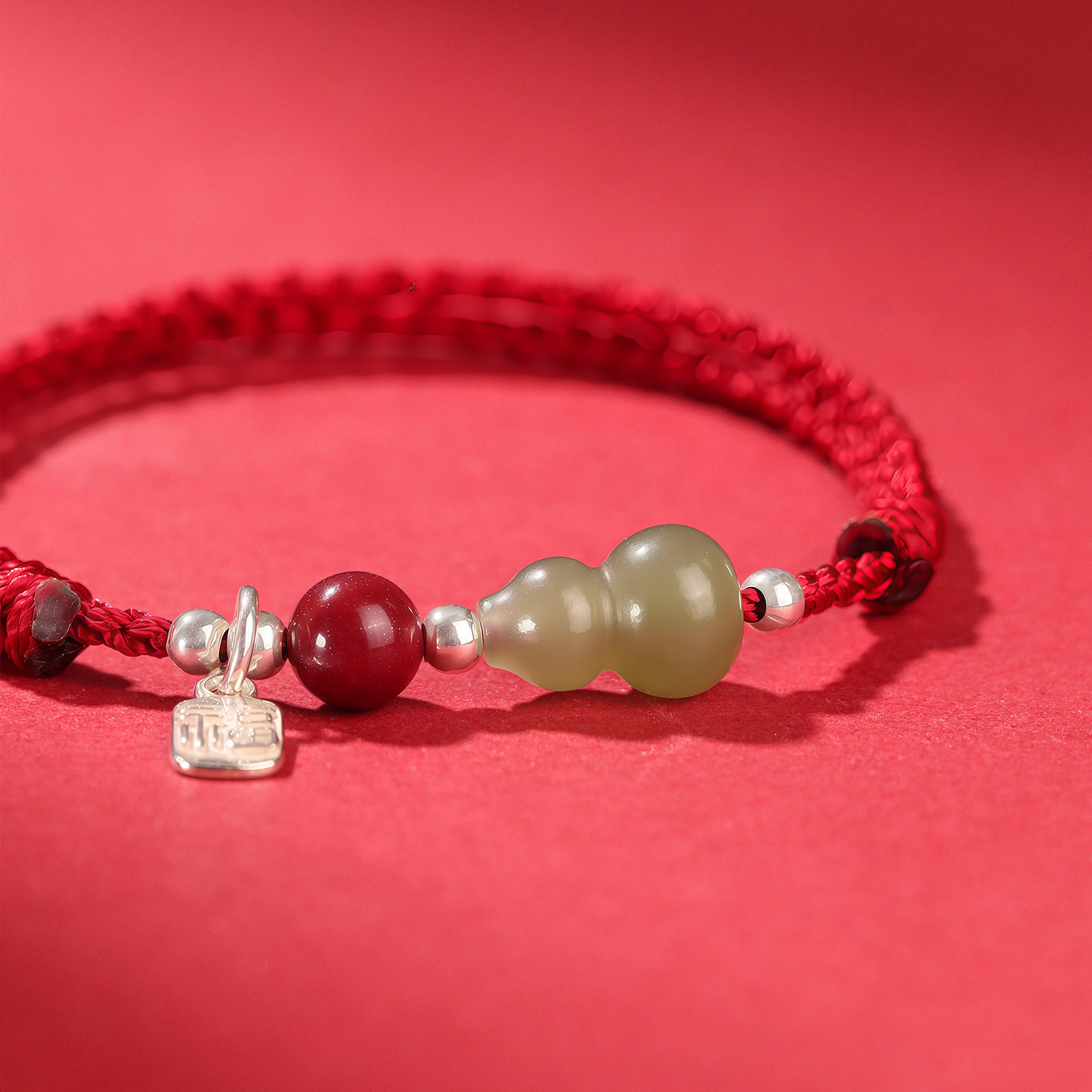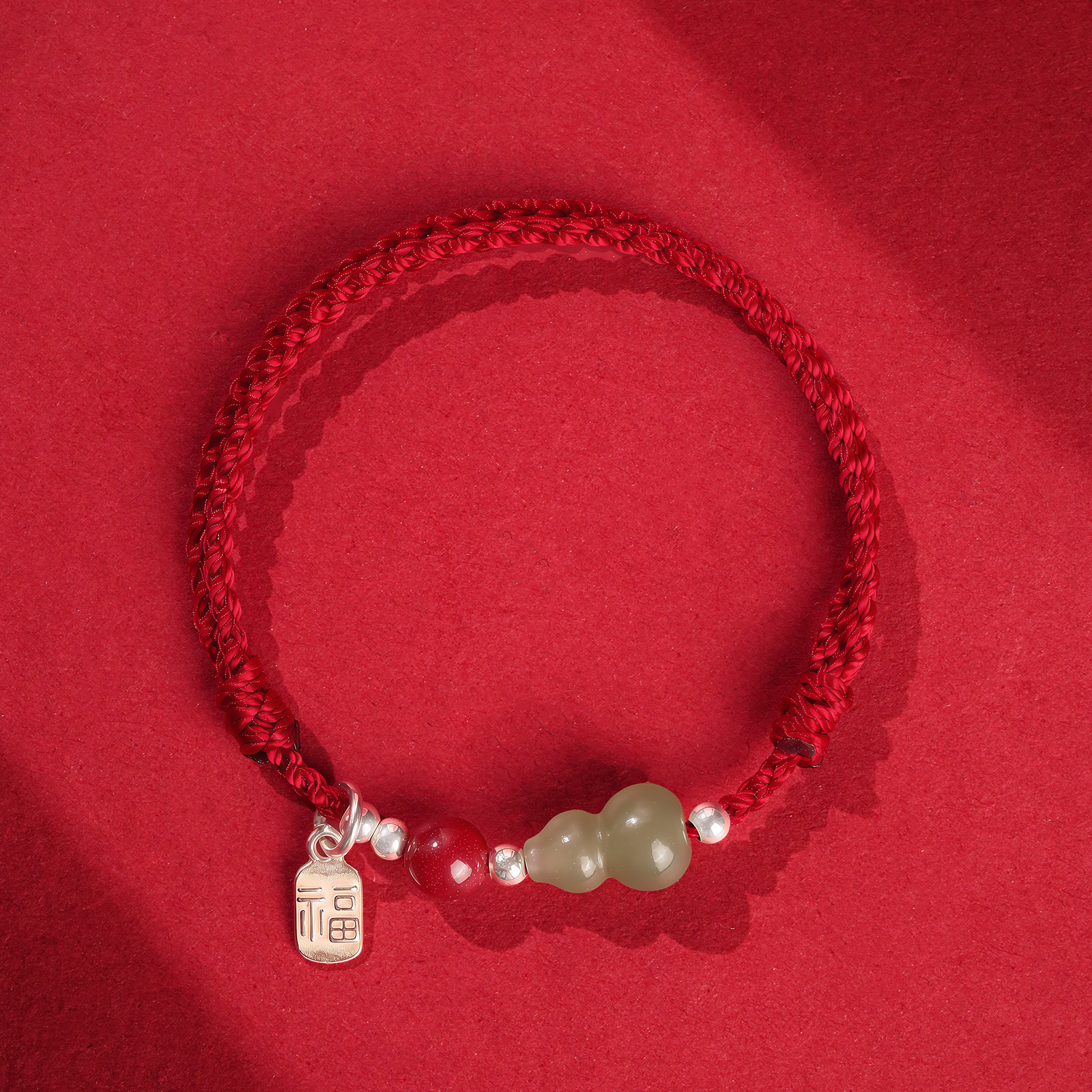 玉朱福红绳天然和田玉葫芦朱砂手链编织绳女款马年本命年红手绳