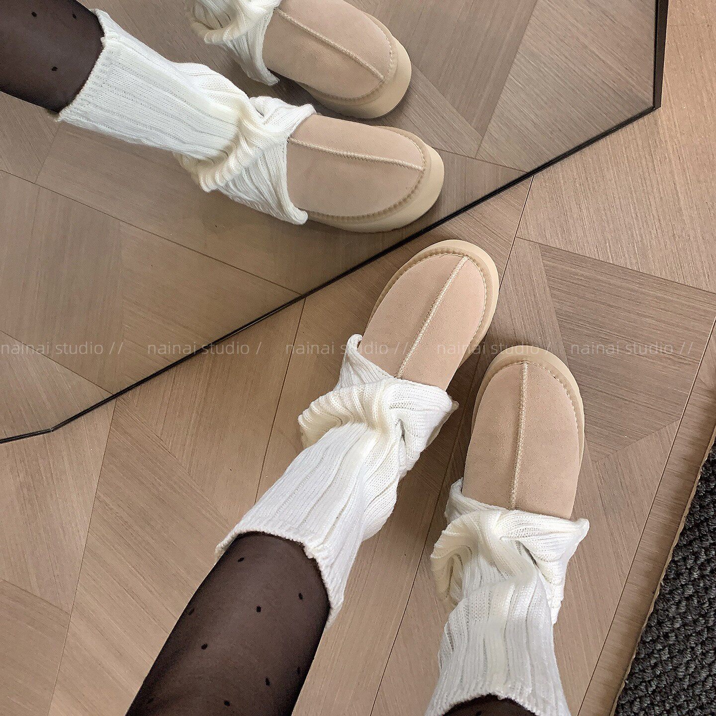 耐尔绵羊毛袜子女秋冬长袜加厚保暖复古百搭中筒袜ins潮堆堆袜