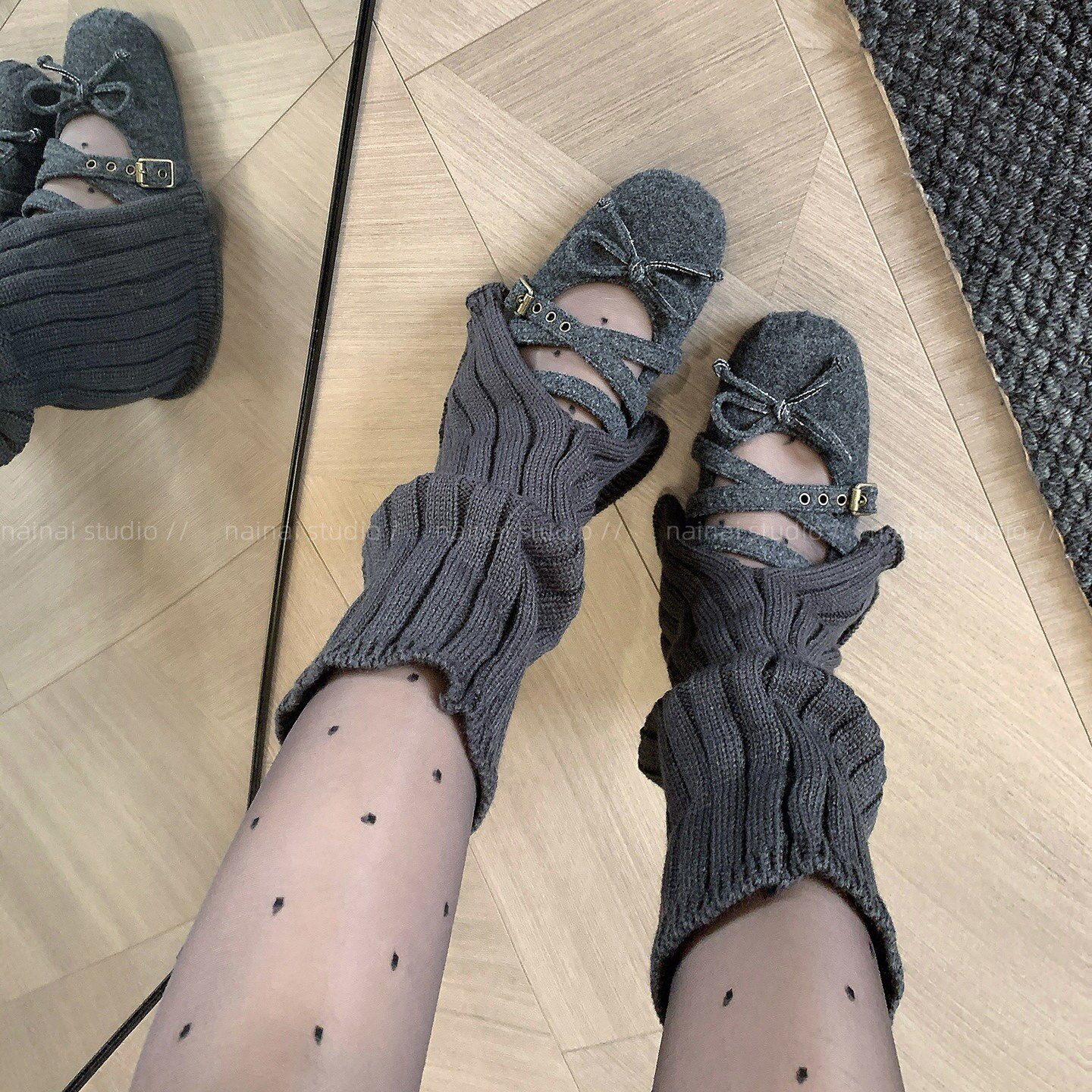 开叉袜套~~粗针织加厚深灰色腿套小腿袜冬季保暖中筒堆堆袜慵懒风