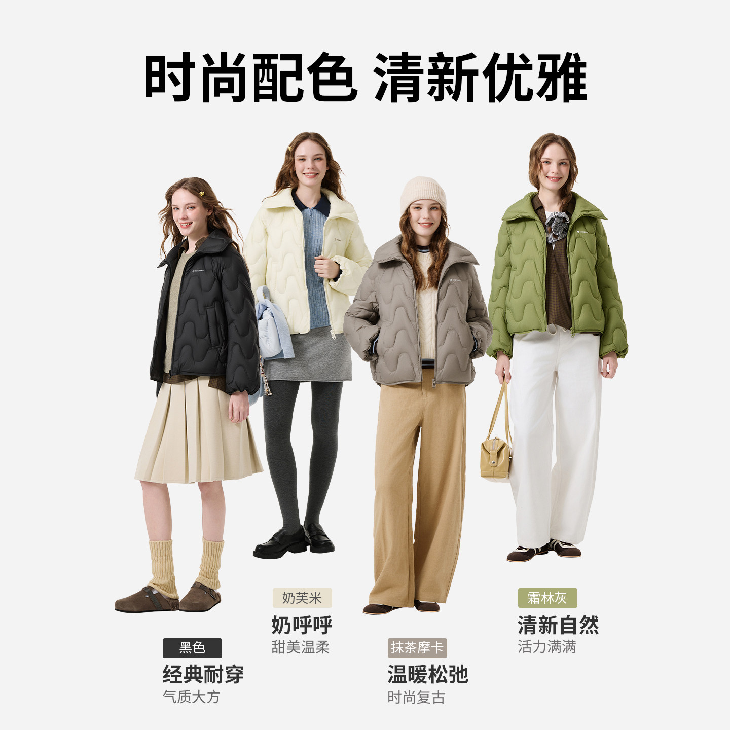 【鞠婧祎同款】鸭鸭2025年冬新款百搭短款女士纯色立领羽绒服外套