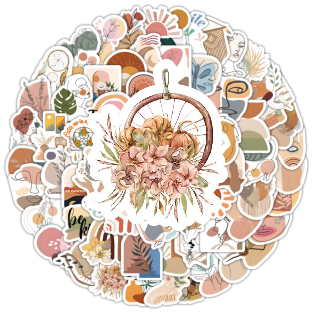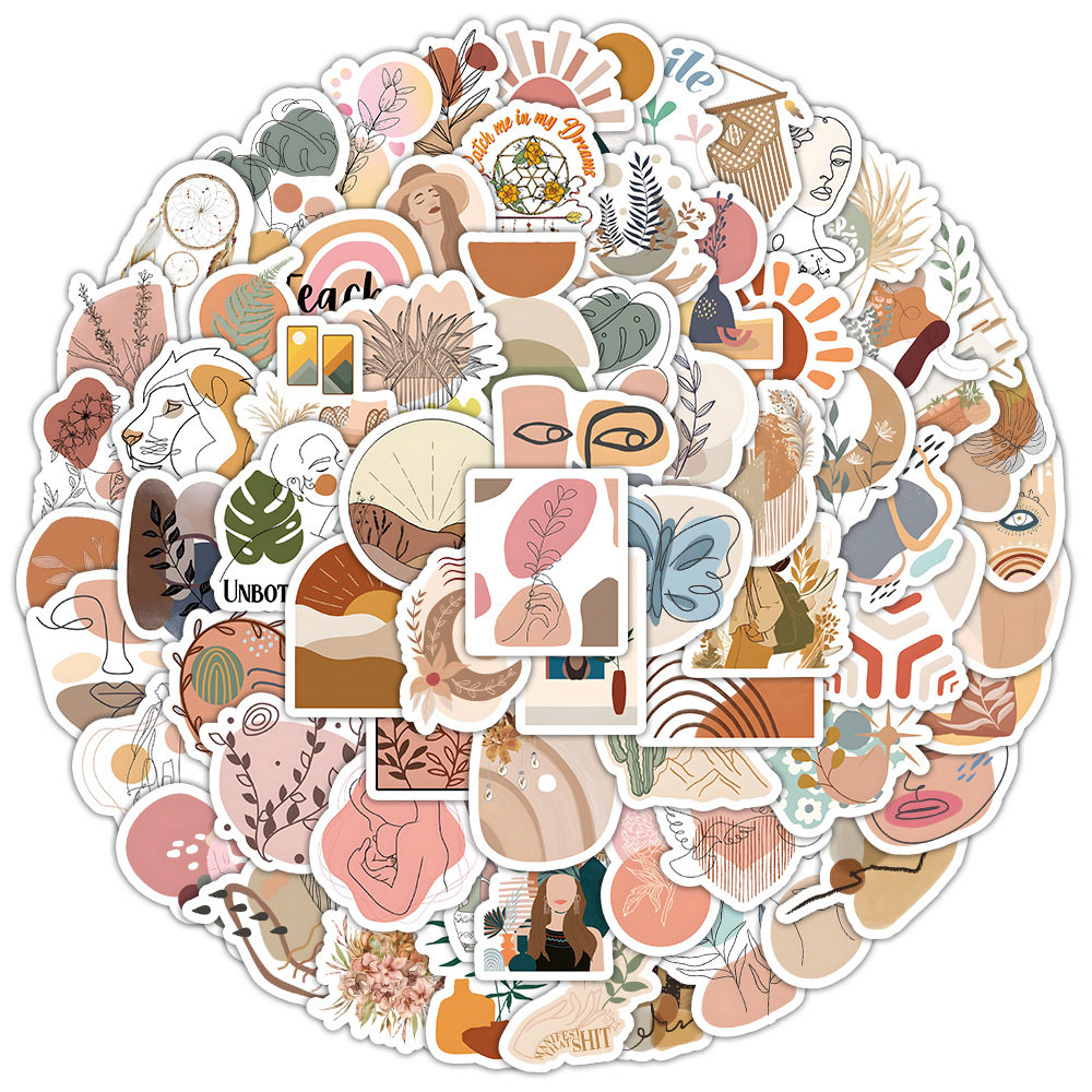 100张波西米亚卡通涂鸦贴纸ins小清新装饰汽车行李箱贴画