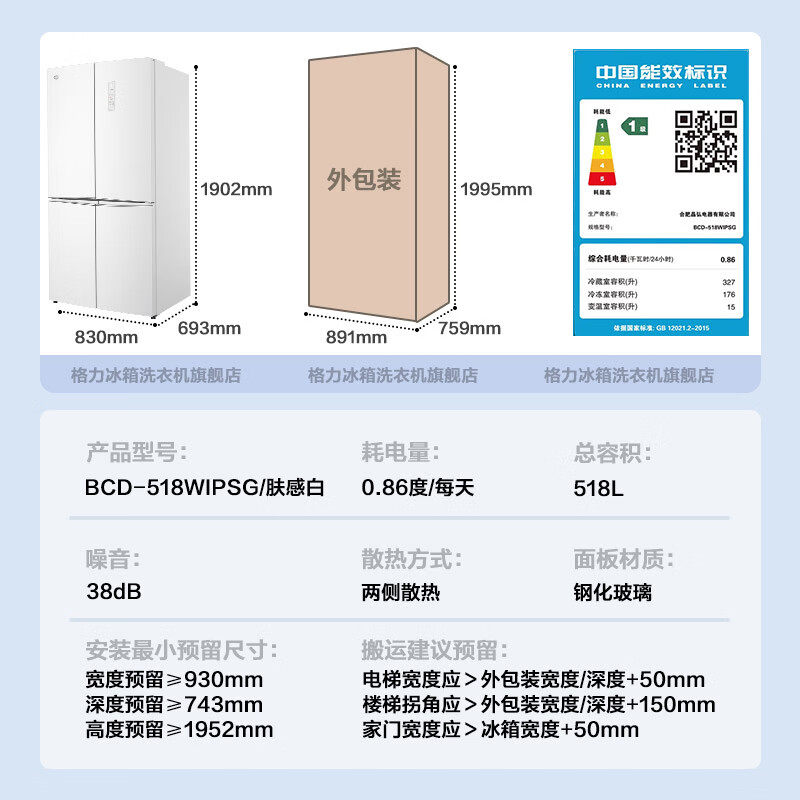 Gree/格力 BCD-518WIPSG鲜花冰箱旗舰款518升BCD-518WIPSG/肤感白