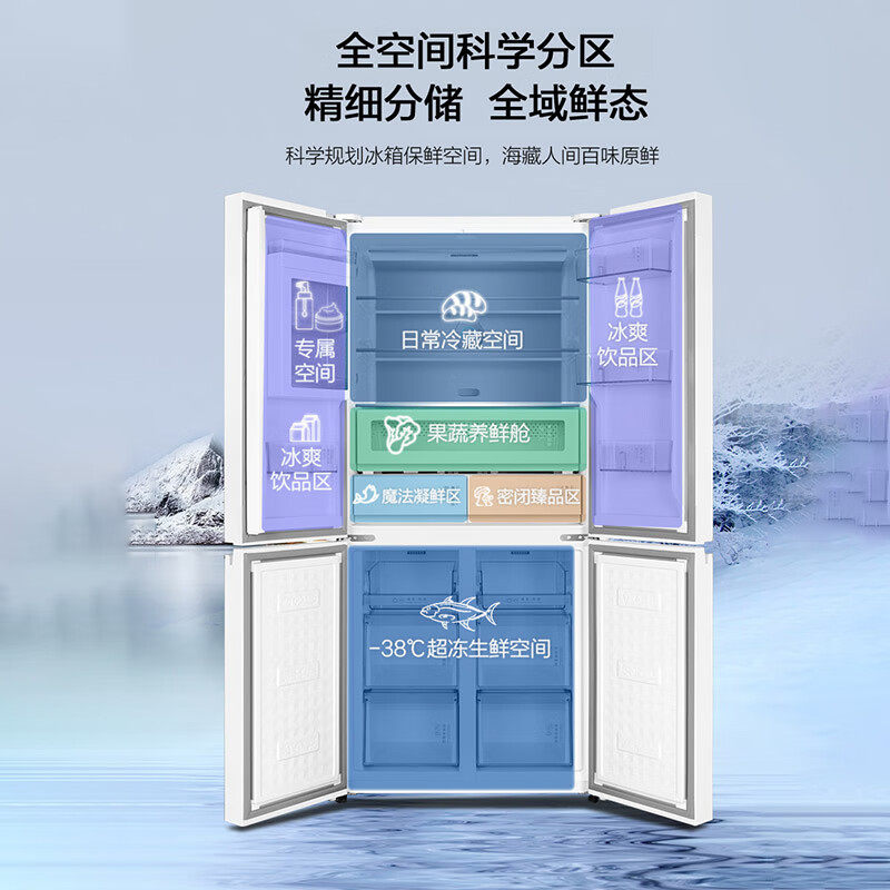 政府补贴海尔出品统帅悦己懒人520十字四门超薄大容量家用电冰箱