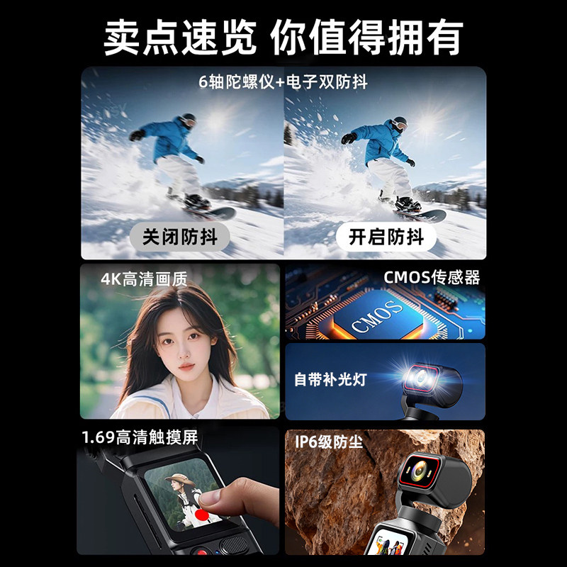 英卓翼vlog防抖防水4K运动相机摩托车行车记录仪摄像拇指Pocket3