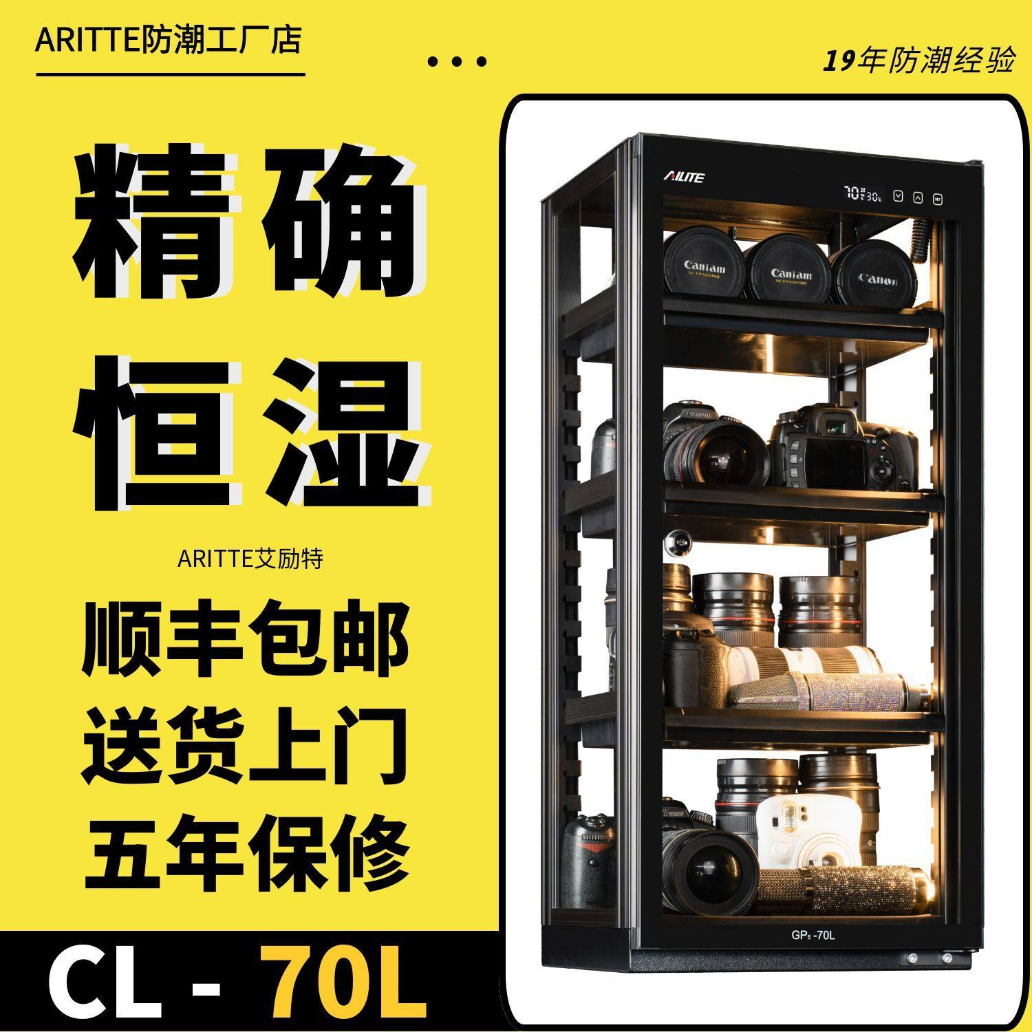 艾励特存茶叶防潮箱相机收纳除湿专业电子干燥箱镜头防潮柜70L