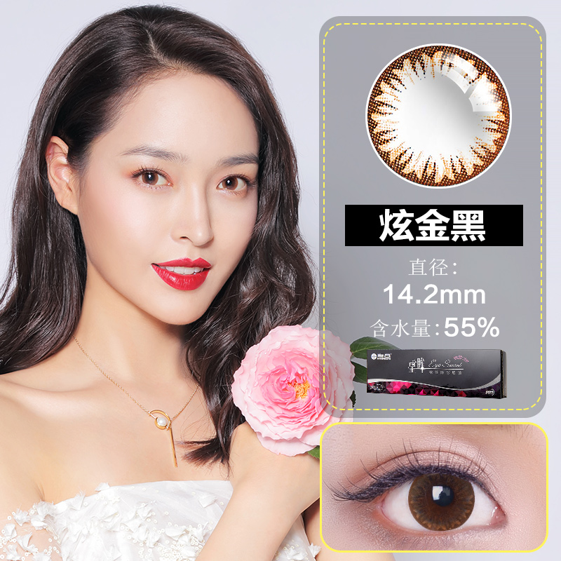 海昌美瞳月抛水凝胶2片锁边大小直径近视隐形眼镜棕色官方带度数