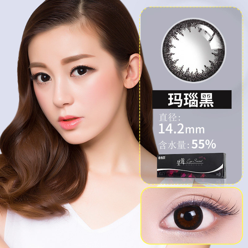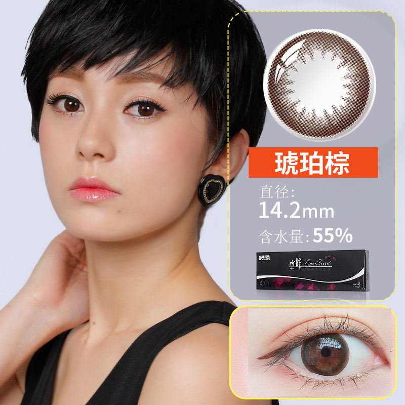 海昌美瞳星眸半年抛1片女带度数自然近视隐形眼镜小直径棕水凝胶