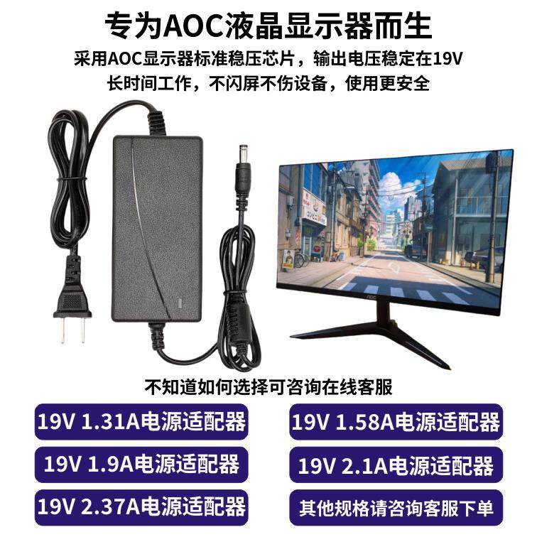 AOC电脑液晶显示器电源适配器充电器线19V伏2.1安1.31A1.84A1.3A