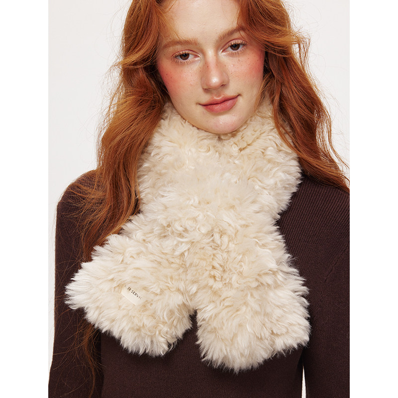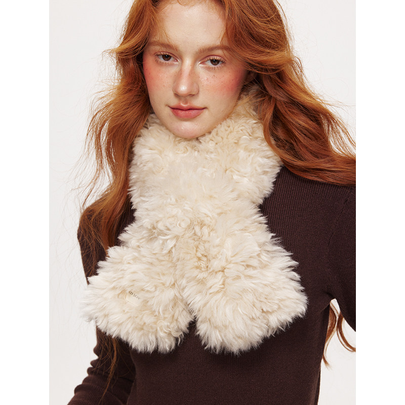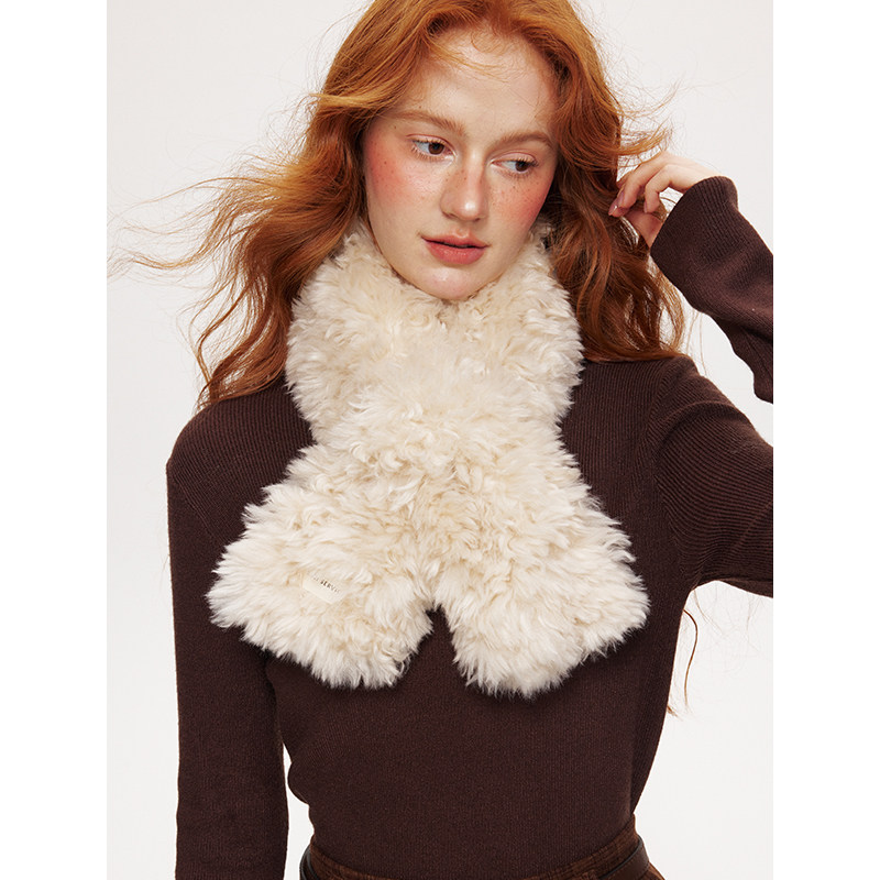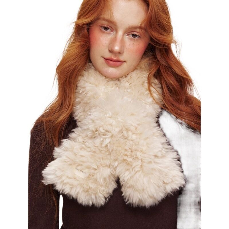 毛绒围巾女款2025新款冬韩系氛围感可爱百搭保暖交叉毛领围脖护颈